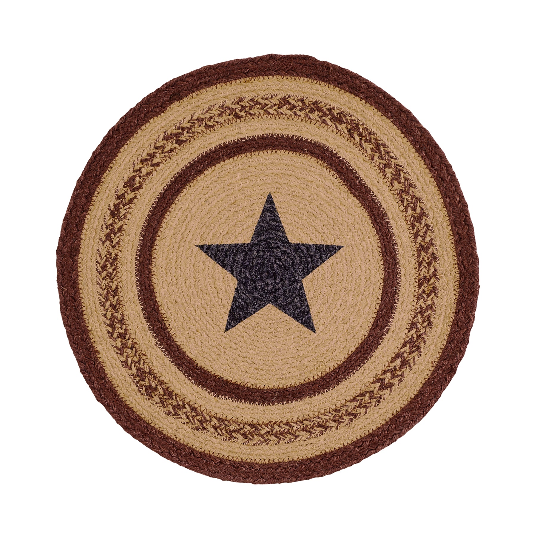 Who says trivets have to be boring? Protect counters and tables from hot pans and dishes with an Americana design and classic texture. The Potomac Jute Trivet includes one circular trivet with a 15-inch diameter made from a premium Jute blend. The rich texture of braided jute is given a primitive twist with alternating burgundy and natural tan striping framing a central five point star design in navy blue.