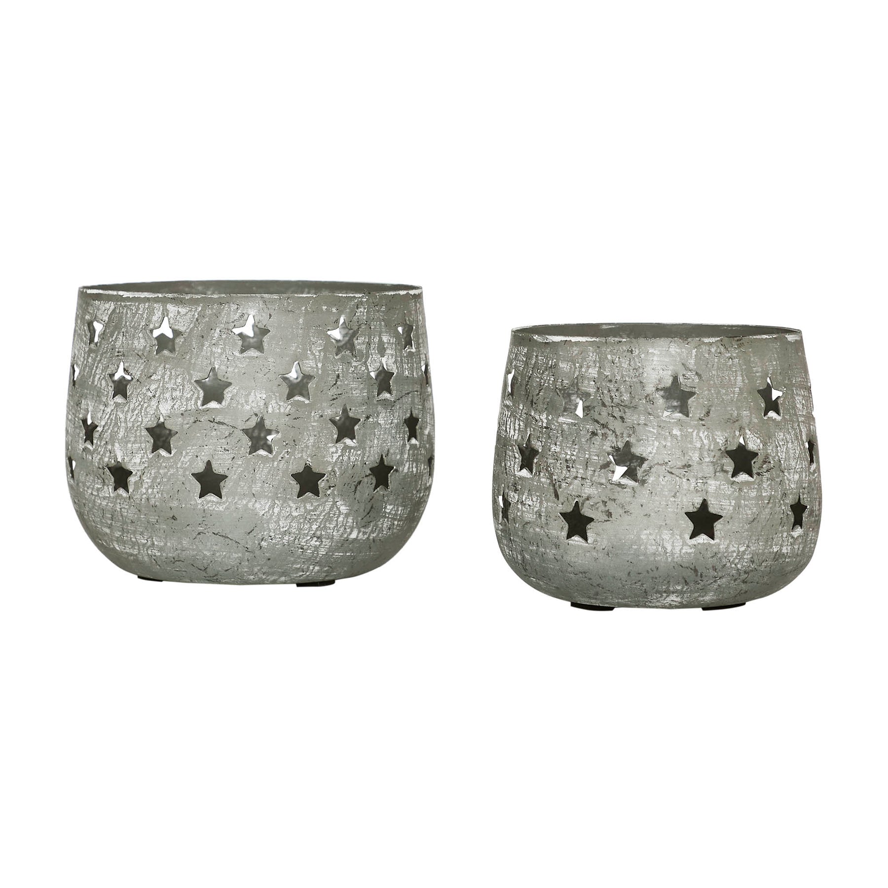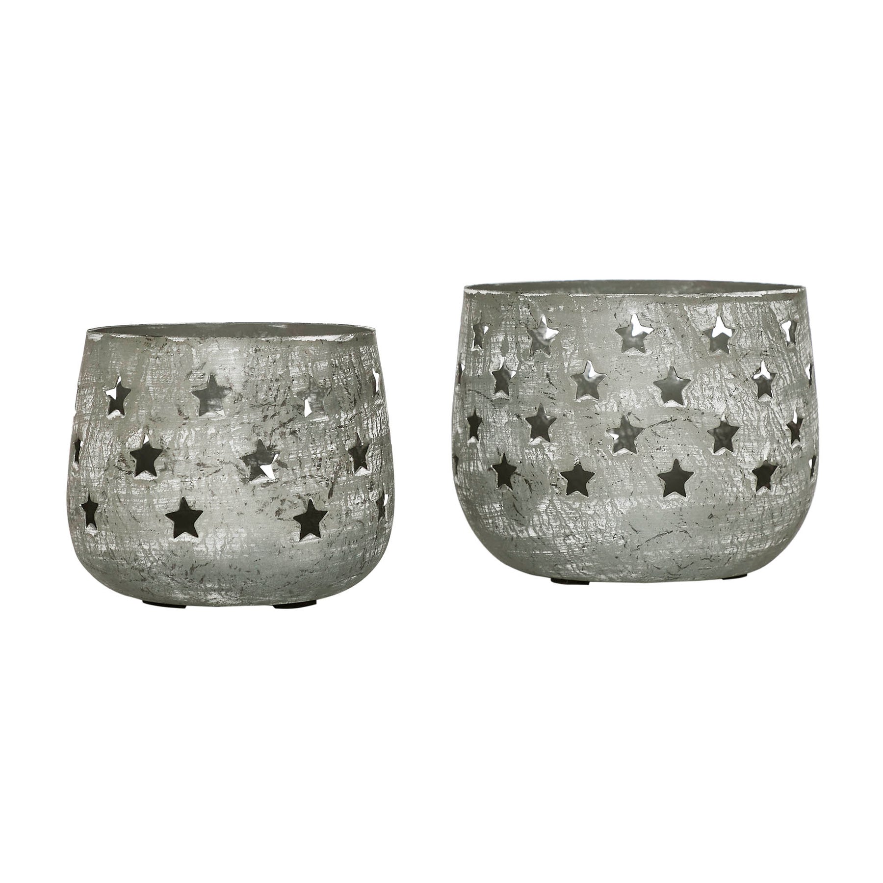Elevate the ambiance of your home with the charming Metal Votive Candle Holder Stars in Antique Grey, offered in a set of two. These rustic candle holders feature metal cups adorned with intricately cutout stars, adding a touch of celestial charm to your indoor decor. Available in two sizes, measuring 4.13x5.3x5.3 inches and 3.54x4.33x4.33 inches, they offer versatility in styling and placement, perfect for enhancing the visual appeal of your kitchen dining table, shelves, or mantels.