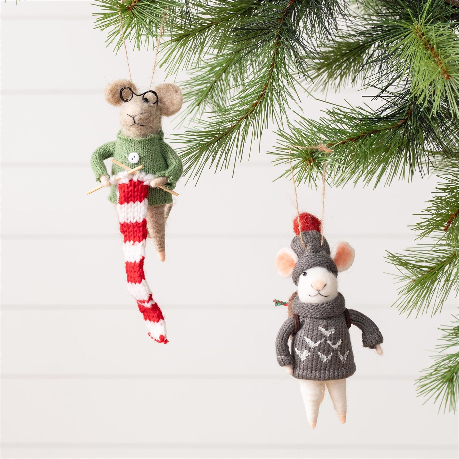 Set of 2 Knitting Sweater Mice Felt Ornaments