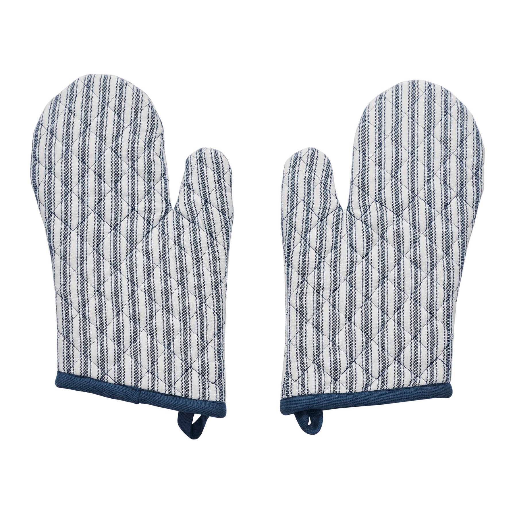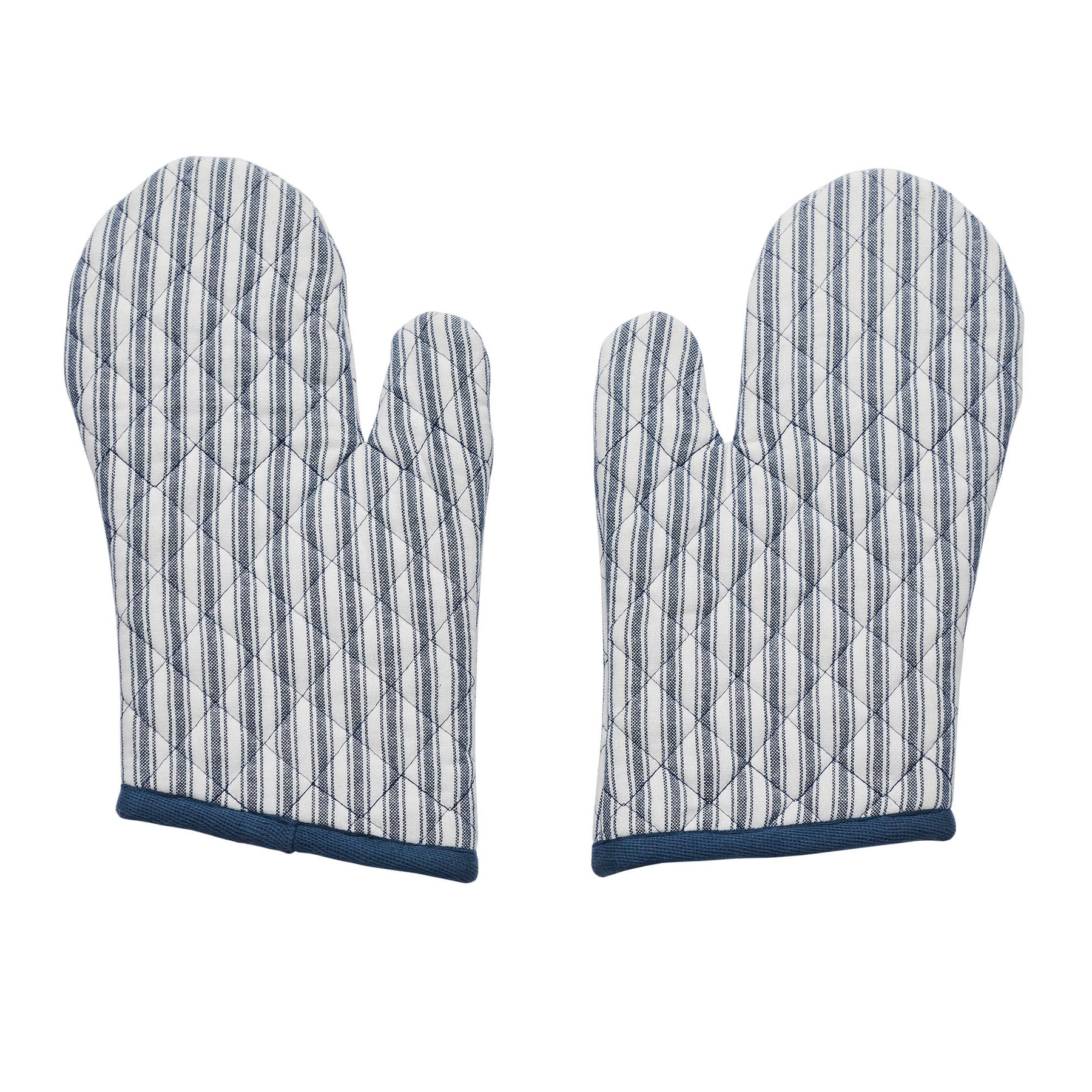 Elevate your farmhouse or country-style kitchen with the Cotton Oven Mitt Set of 2 from the Sawyer Mill Blue Collection. These 12.5x8-inch oven mitts are designed for heavy-duty use, ensuring your hands are protected when handling hot cookware. Crafted with high-quality cotton, these mitts offer a woven, textured grip that provides excellent control for both men and women during baking, cooking, or grilling. The Sawyer Mill Blue Collection's classic striped design in denim blue adds a timeless touch to your culinary space. This set of oven mitts is heat-resistant and built to withstand the rigors of cooking. Whether you're baking, cooking, or grilling, these mitts will help you do it safely and stylishly while adding a touch of classic charm to your kitchen.