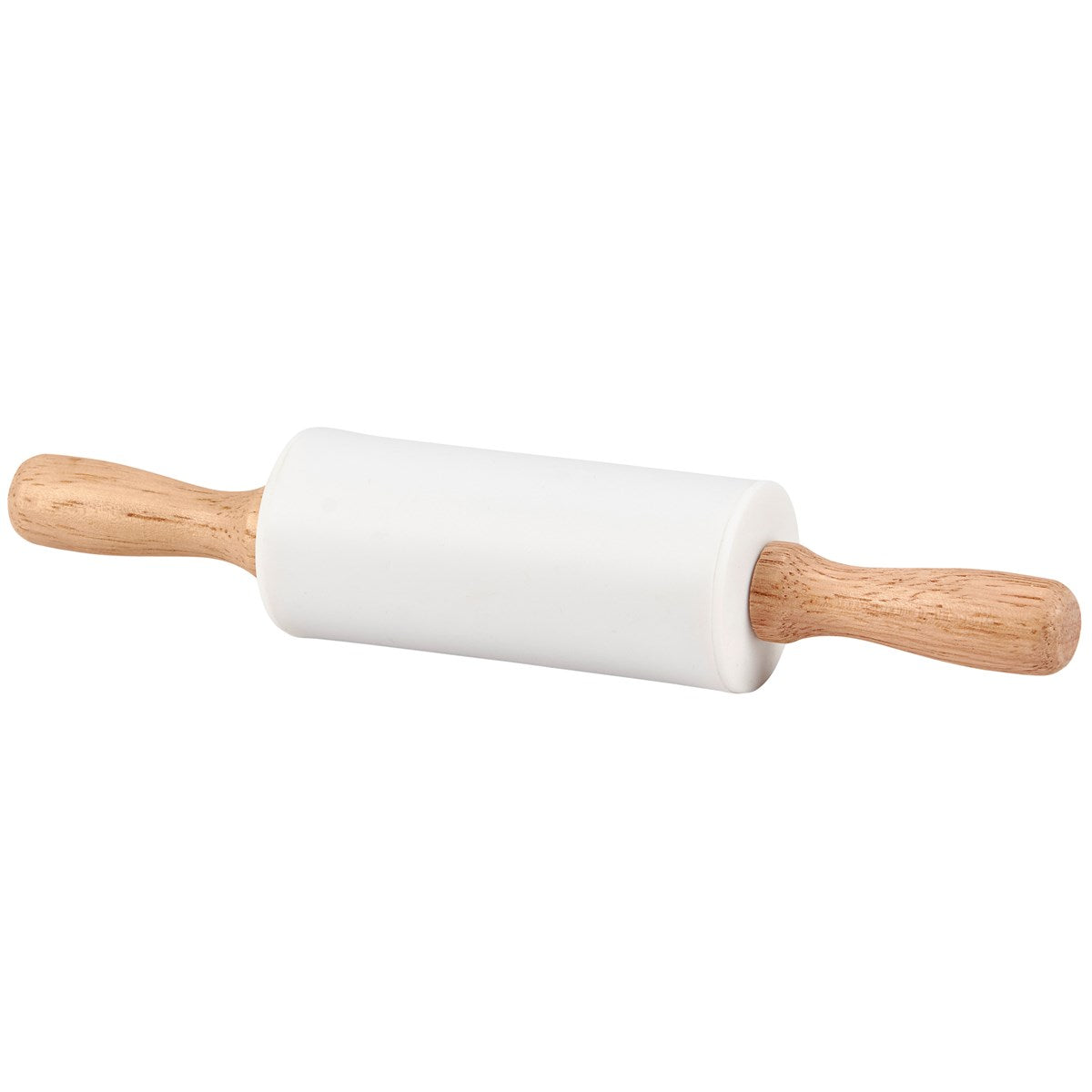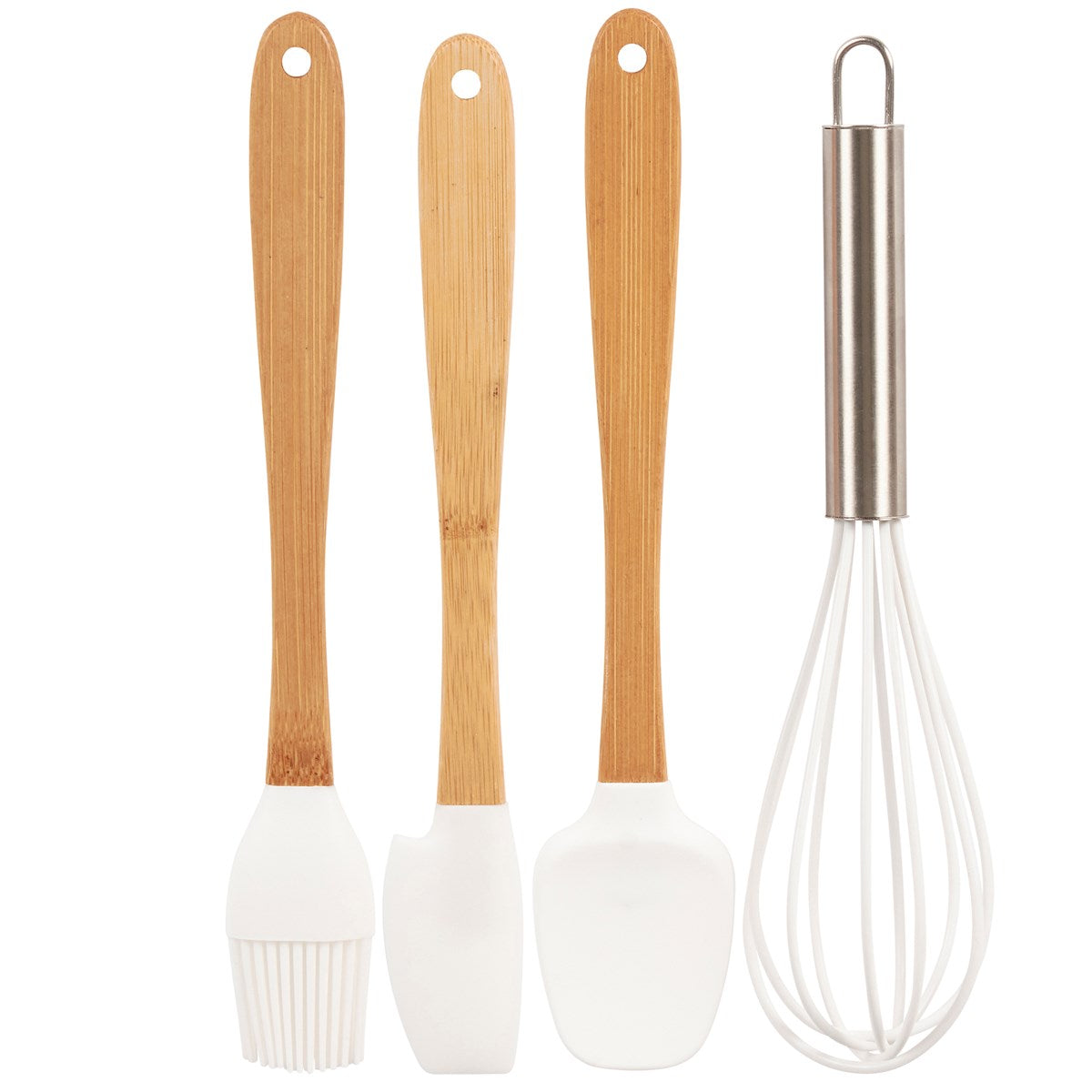 A baking set from our Christmas Collection featuring kid size baking items perfect for gifting or getting kids excited for holiday baking. Baking set holds 12 pieces including 6 silicone baking cups, 1 silicone bread mold, 1 whisk, as well as a silicone rolling pin, pastry brush, spatula, and spoon all with wooden handles. Hand-wash recommended; do not microwave. Recommended for ages 6+.