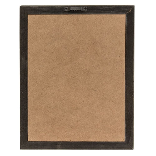 The Simmer Cook Bake Frame is a decorative sign with a white background, black polka-dot design, and a distressed black wood frame. The sign reads "Simmer-cook-flip-scoop-stir-fry-bake-broil-whisk" in a variety of printed black fonts and features an assortment of sketched-style kitchenware artwork. This sign brings a whimsical accent to any kitchen space, displayed on a wall using the sawtooth hanger or freestanding on a shelf or table.