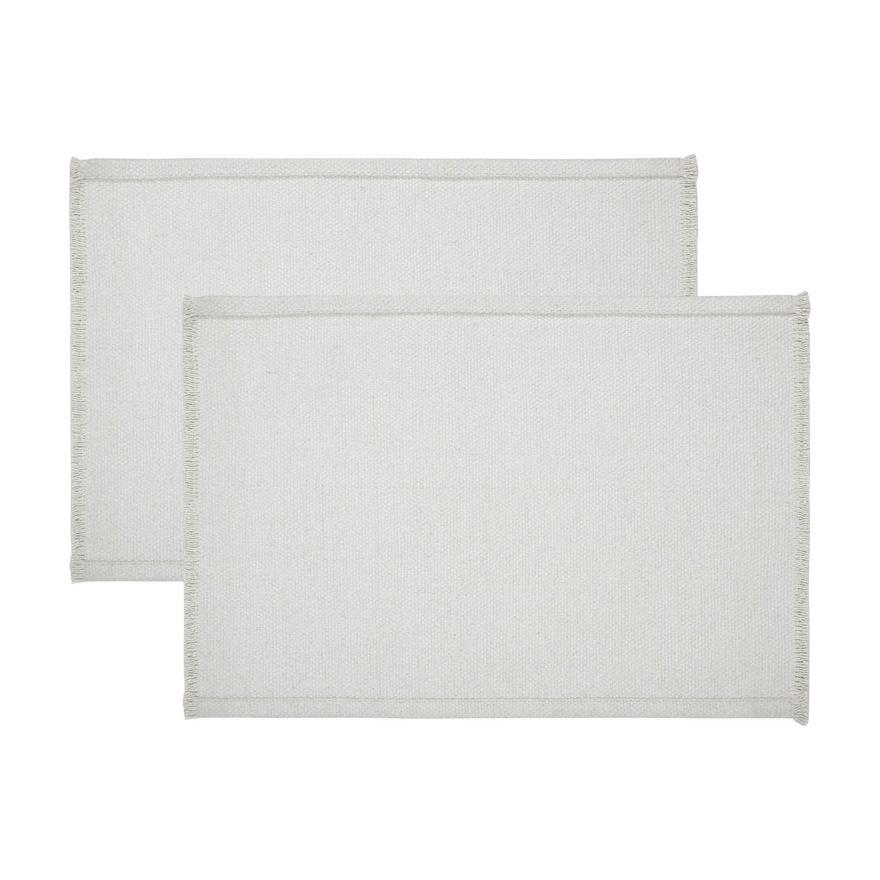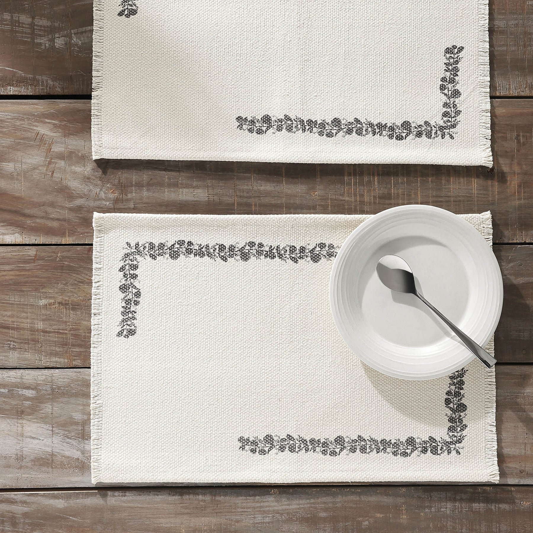 Add a touch of simple elegance to your table with this set of neutral fabric placemats. Each features a soft ivory background framed with a delicate gray eucalyptus design, creating a timeless look that works beautifully for everyday dining or special gatherings. The subtle texture and fringed edges add relaxed charm to farmhouse and cottage-style settings.