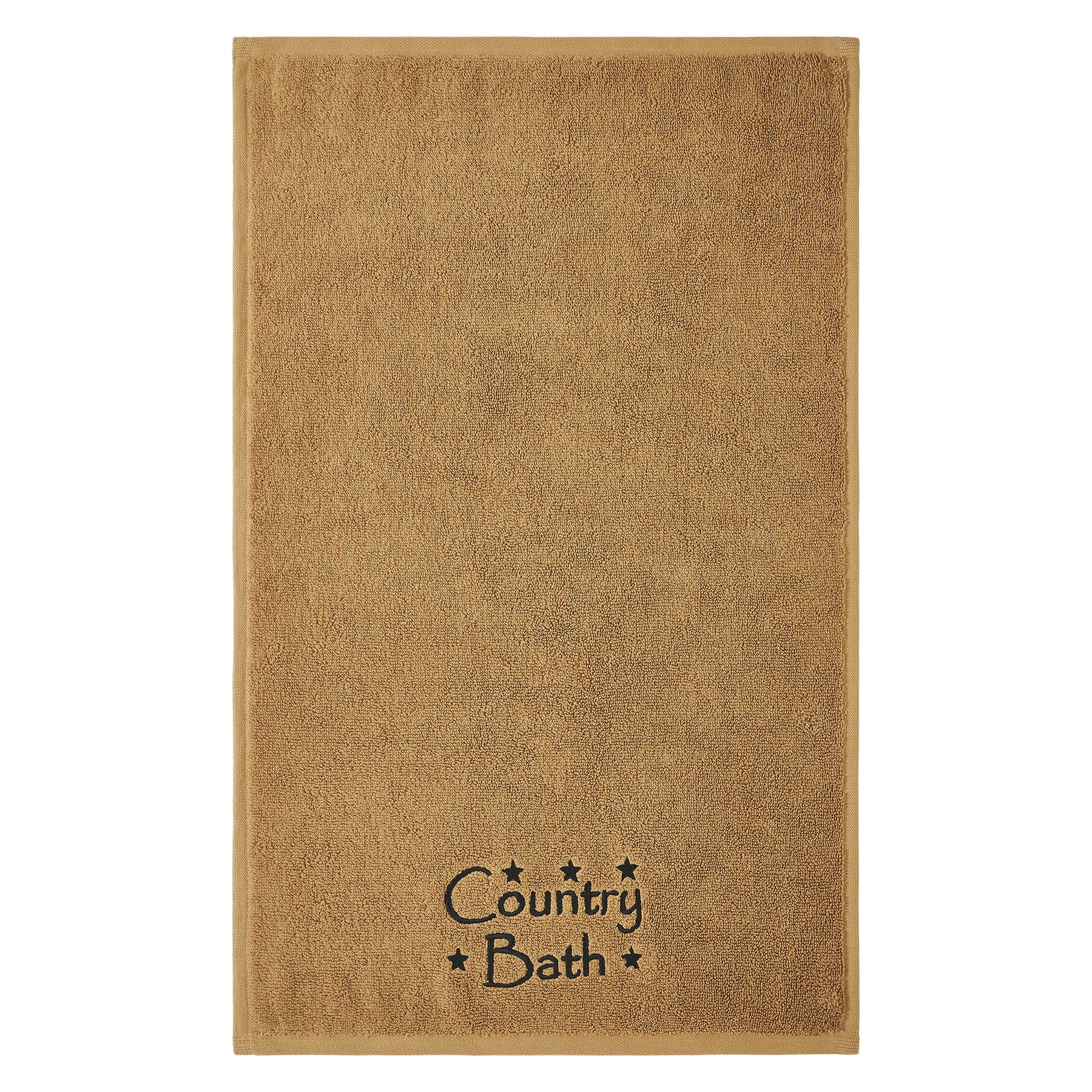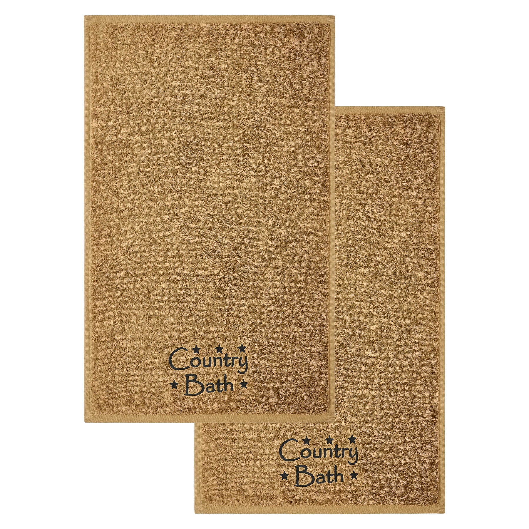 This set of 2 tan hand towels adds a warm farmhouse touch to your bathroom with the stitched phrase "Country Bath" accented by simple black stars. Soft, absorbent, and charming, they're perfect for everyday use while giving your space a cozy country feel.