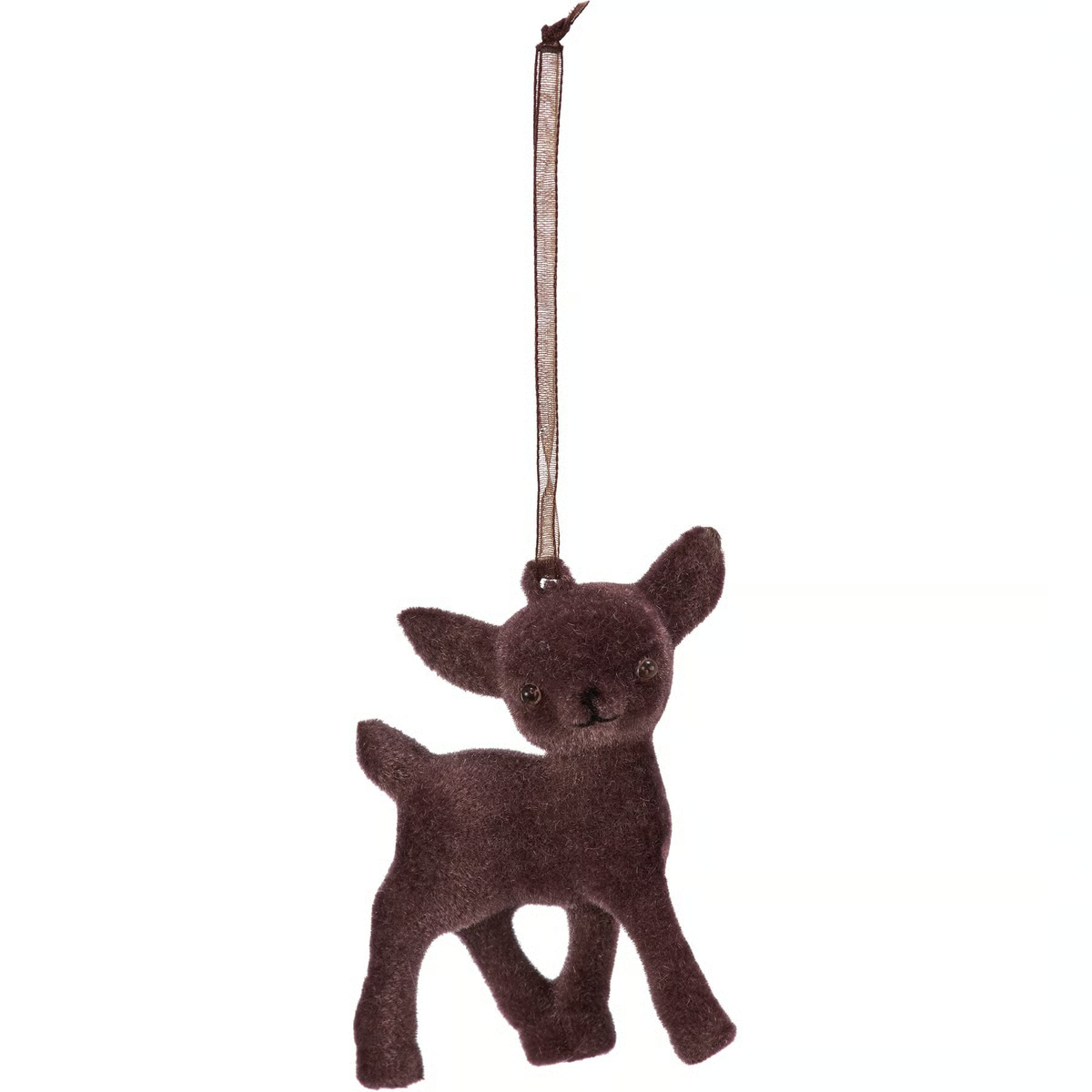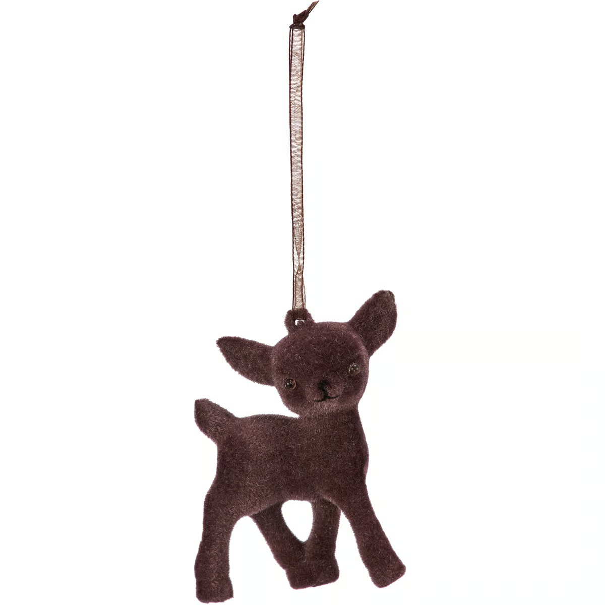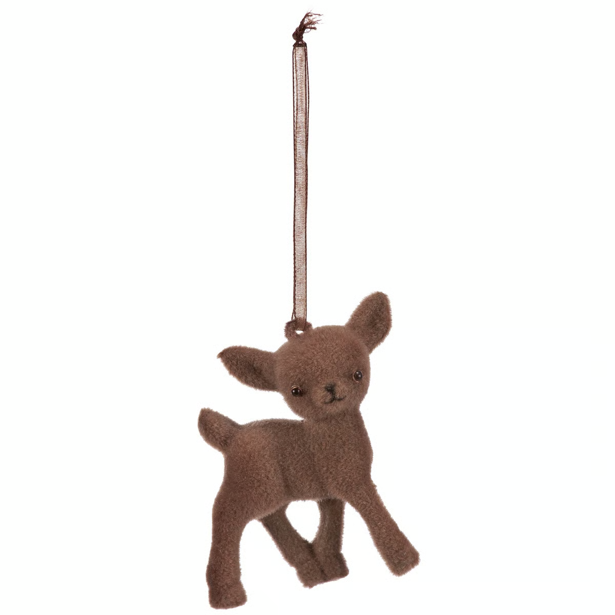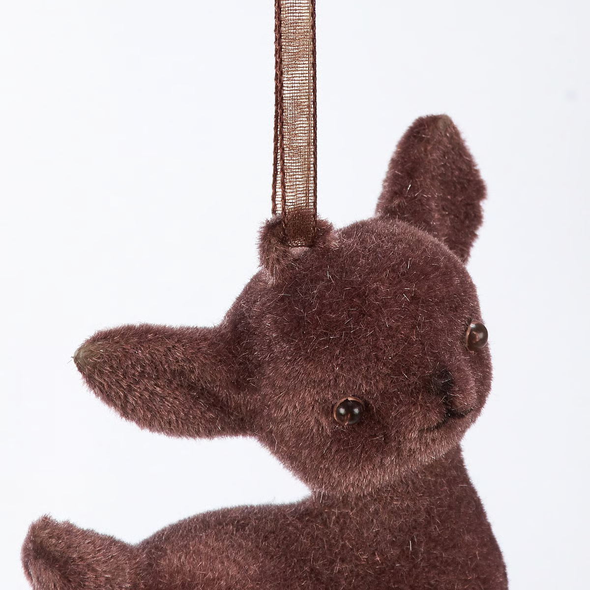 A set of six decorative ornaments from our Christmas Collection displaying deer designs with flocked detail and various shades of brown color. Our Flocked Deer ornament set is ready to hang via the attached ribbon loops. Set is packaged together in plastic tube. A rustic set of seasonal home accents perfect for a Christmas tree or for gifting.
