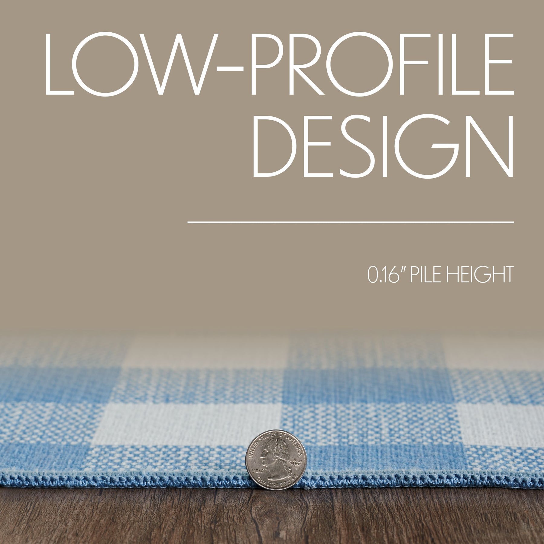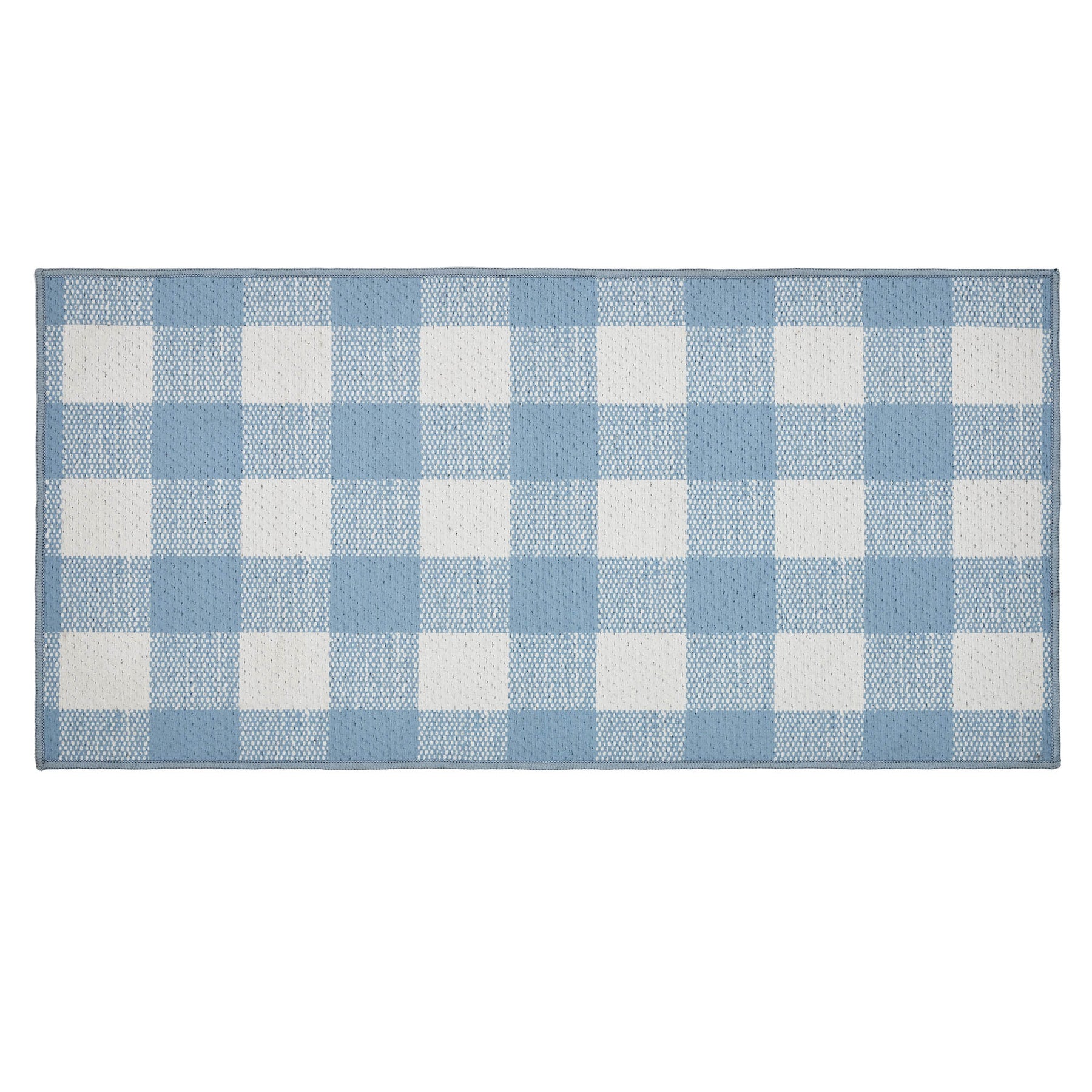 Enhance your home decor with the Annie Buffalo Check Collection Polyester Rug in Dusk Blue. Measuring 17x36 inches, this rectangular area rug beautifully combines farmhouse and country charm, featuring the iconic buffalo check pattern. Crafted from durable polyester, it's designed for both indoor and outdoor use, making it a versatile and stylish addition to any space.