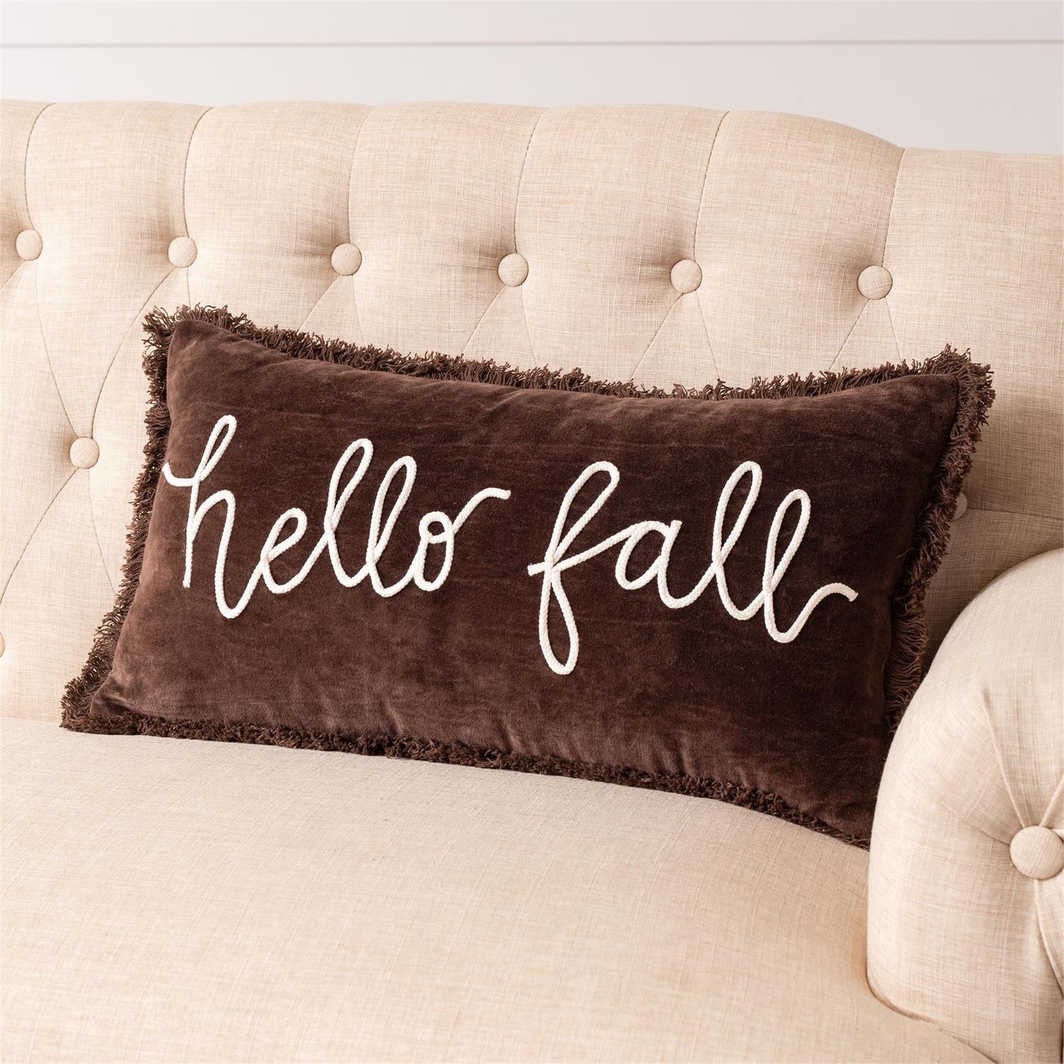 Hello Fall Brown Velvet Lumbar Pillow adds cozy autumn style to your space with soft velvet fabric and simple seasonal lettering. Perfect for sofas, chairs, or benches, this warm brown accent pillow brings a welcoming fall feel that pairs beautifully with farmhouse, rustic, and classic seasonal décor.