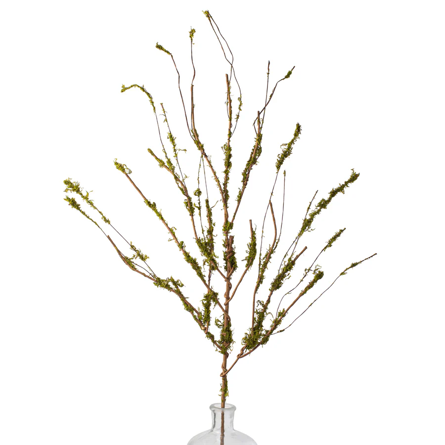 Bring the outdoors in with this 31" decorative twig branch, accented with soft green moss for a natural, woodland look. Perfect for tall vases, seasonal arrangements, or as a standalone statement piece, it adds earthy texture and rustic charm to any display.