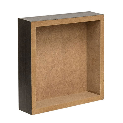 The Trick or Treat Black Ticking Stripe Box Sign adds an elegant accent to spooky seasonal decor. Crafted from wood with a black-painted finish, the front of the sign features a gray and black ticking stripe background. Distressed edges add a worn, rustic look. An orange wooden circle cutout adorns the front of the sign, complete with black text that reads "trick or treat" in a vintage Gothic font. The open-back design allows the sign to hang or stand freely.