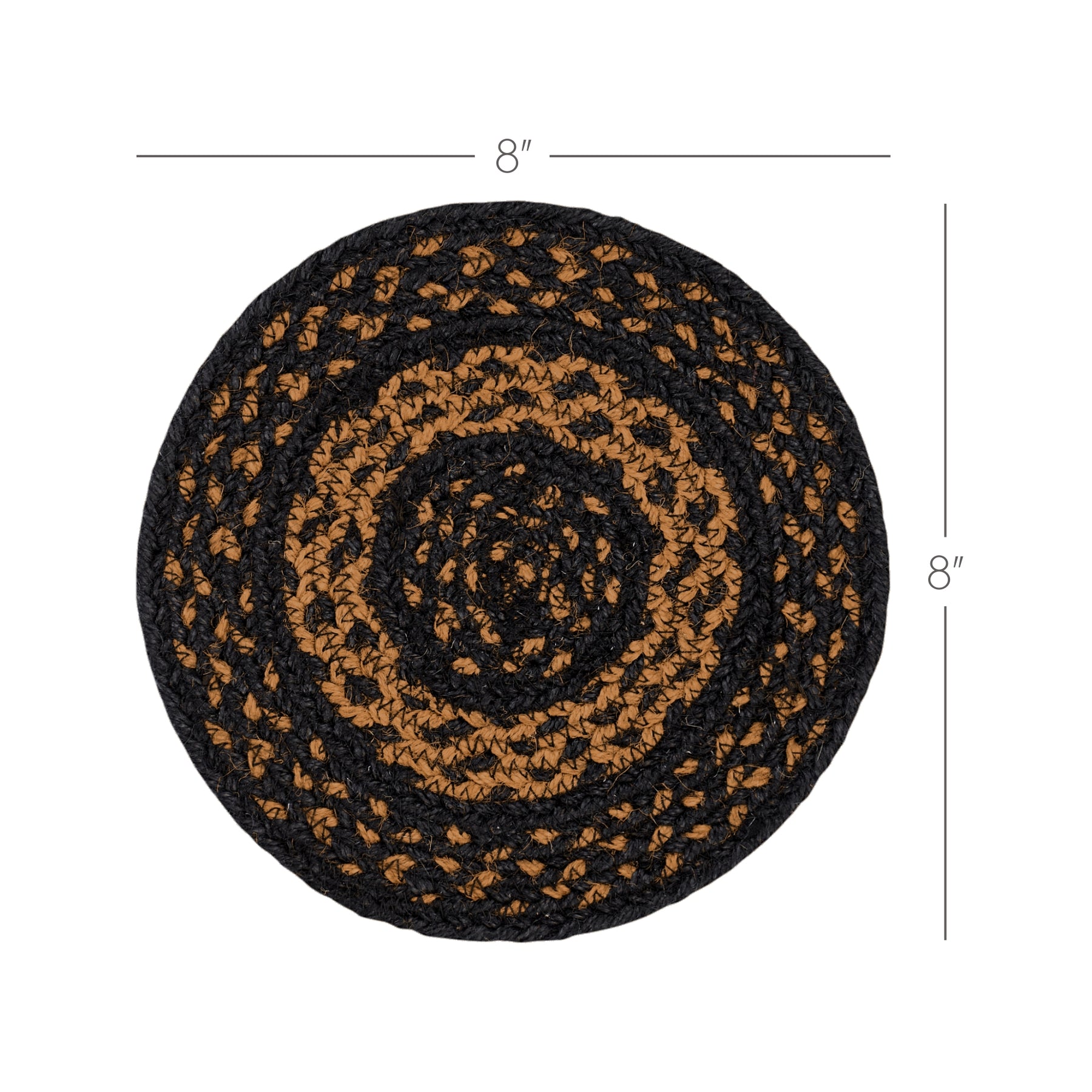 Who says trivets have to be boring? Protect counters and tables from hot pans and dishes with primitive color and classic texture. The Black & Tan Jute Trivet includes one circular trivet with an 8-inch diameter made from a premium Jute blend. The rich texture of braided jute is given a rustic feel with country black and deep tan tones for a classic country look.