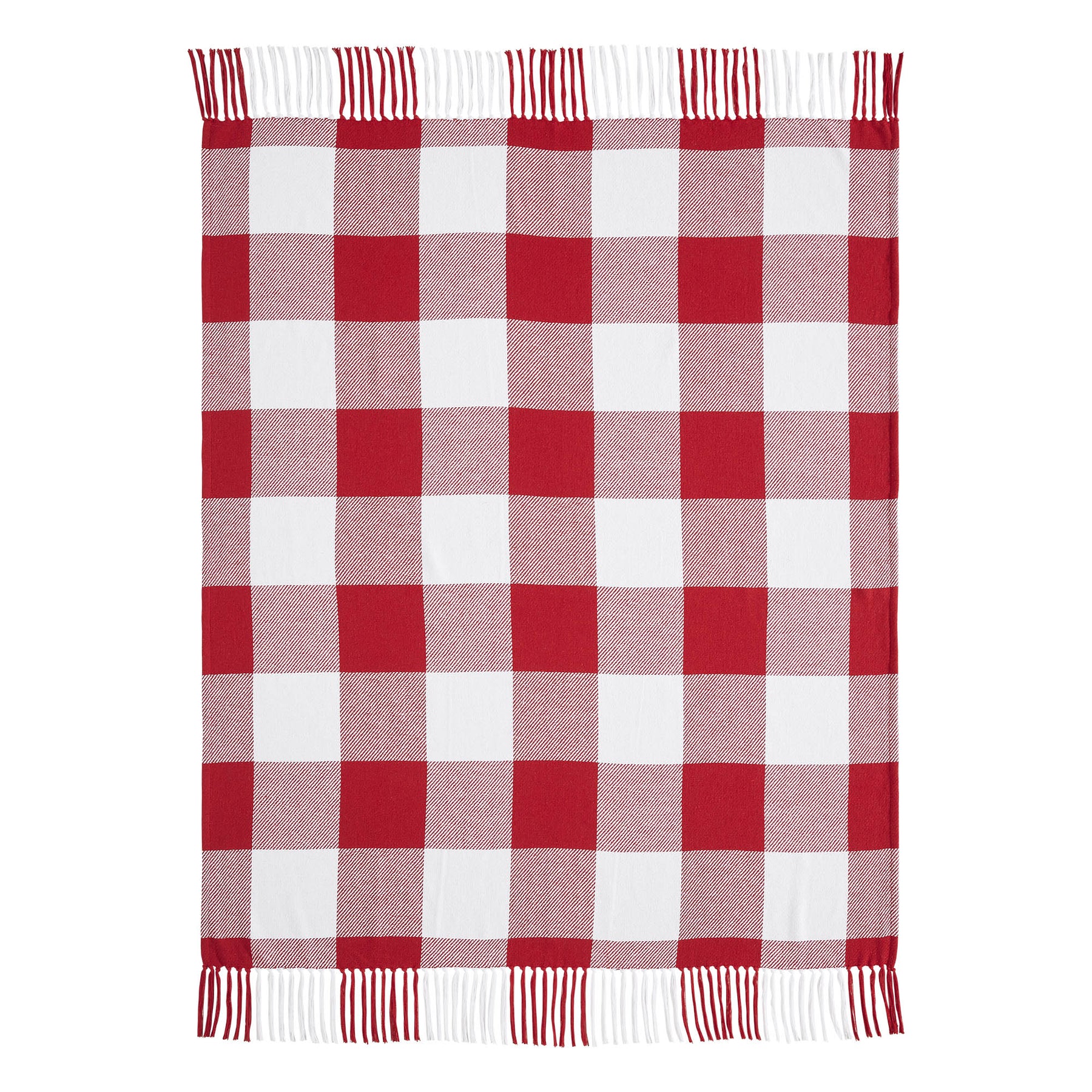 Whether draped over the back of chair or keeping you cozy, this classic plaid throw blanket will add a sophisticated style wherever it lands. The Annie Red Check Woven Throw measures 50x60 inches and is constructed with a durable cotton polyester blend. This throw features classic red and white checks for a timeless plaid design. The tasseled throw blanket is perfect for holiday decor or year-round farmhouse style.