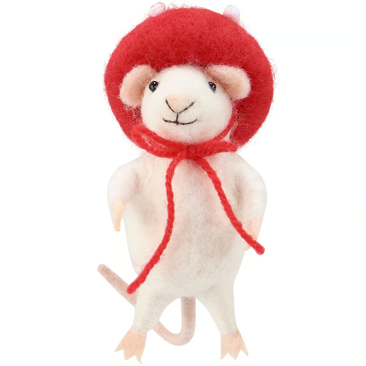 A felt critter from our Cottagecore Collection displaying a happy mouse with a garden inspired design perfect for adding character to any space. Mouse critter features cute handmade details including a felt mushroom hat with red yarn tie. Our Mushroom Hat Mouse critter is designed to free-stand on flat surface for display or hang for display via the attached hanger. Contains small parts; this is not a toy. A fun garden-themed home accent that displays well alone or as a collection with other critters.