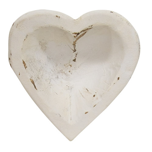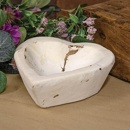 Whitewashed Carved Wood Sweetheart Bowl