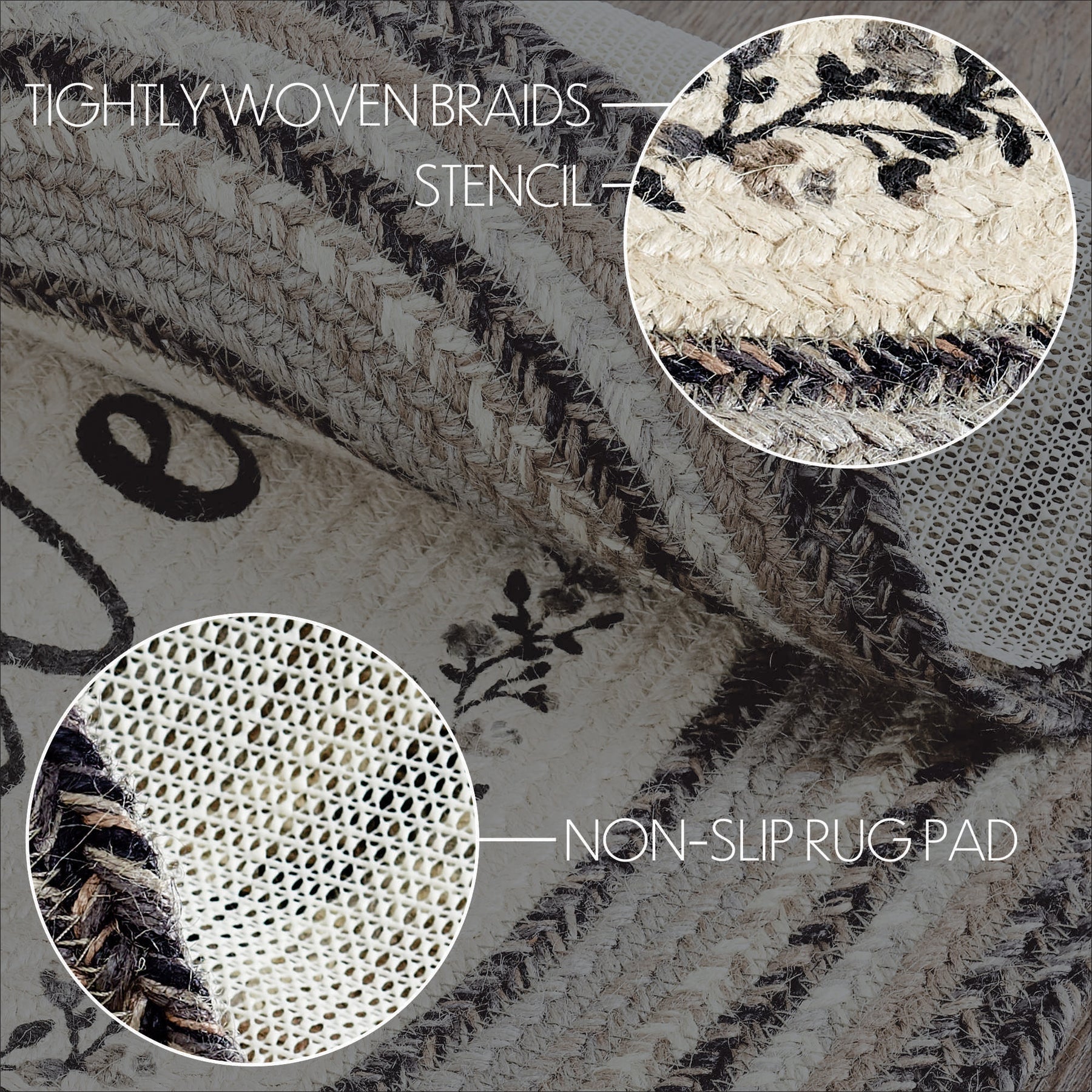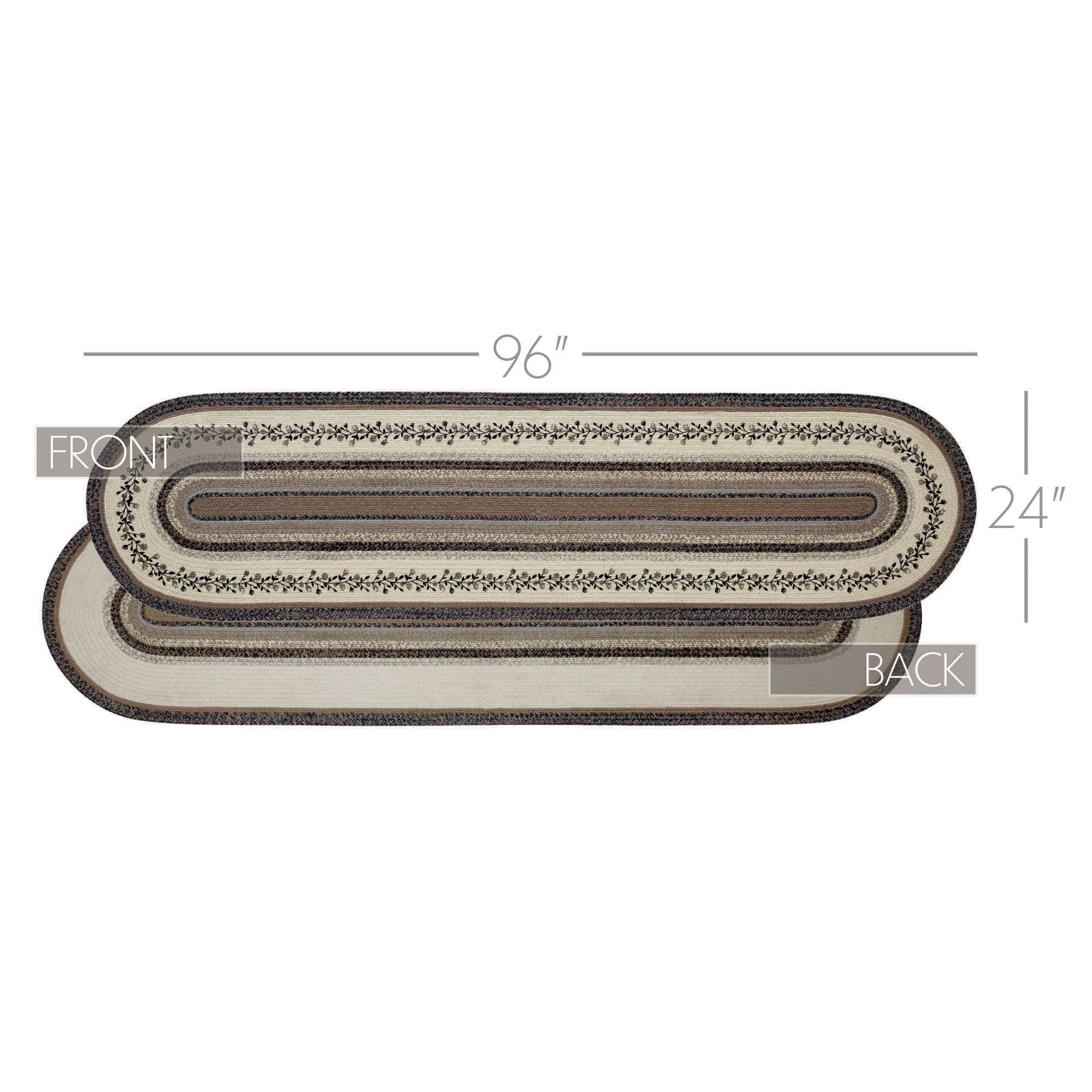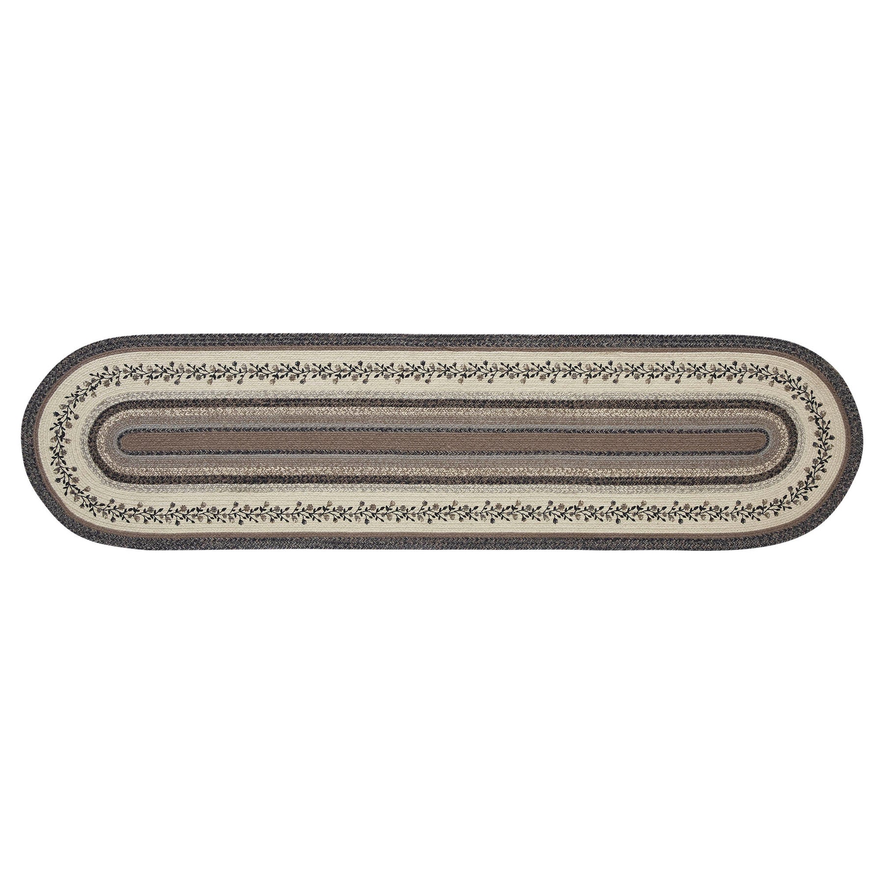 Create a sophisticated, modern look for your hallway with neutral colors and feminine floral details in a curl-resistant jute blend that adds style and safety. The Floral Vine Jute Runner measures 24x96 inches and features a classic oval shape and tight braids constructed with a durable jute blend. The special blend relaxes faster and stays flat. The included PVC mat makes sure your beautifully braided jute rug stays exactly where it should. Features a blend of black, grey, and cream with a vine and floral design for a soft, shabby chic look that complements a wide array of country farmhouse decor.