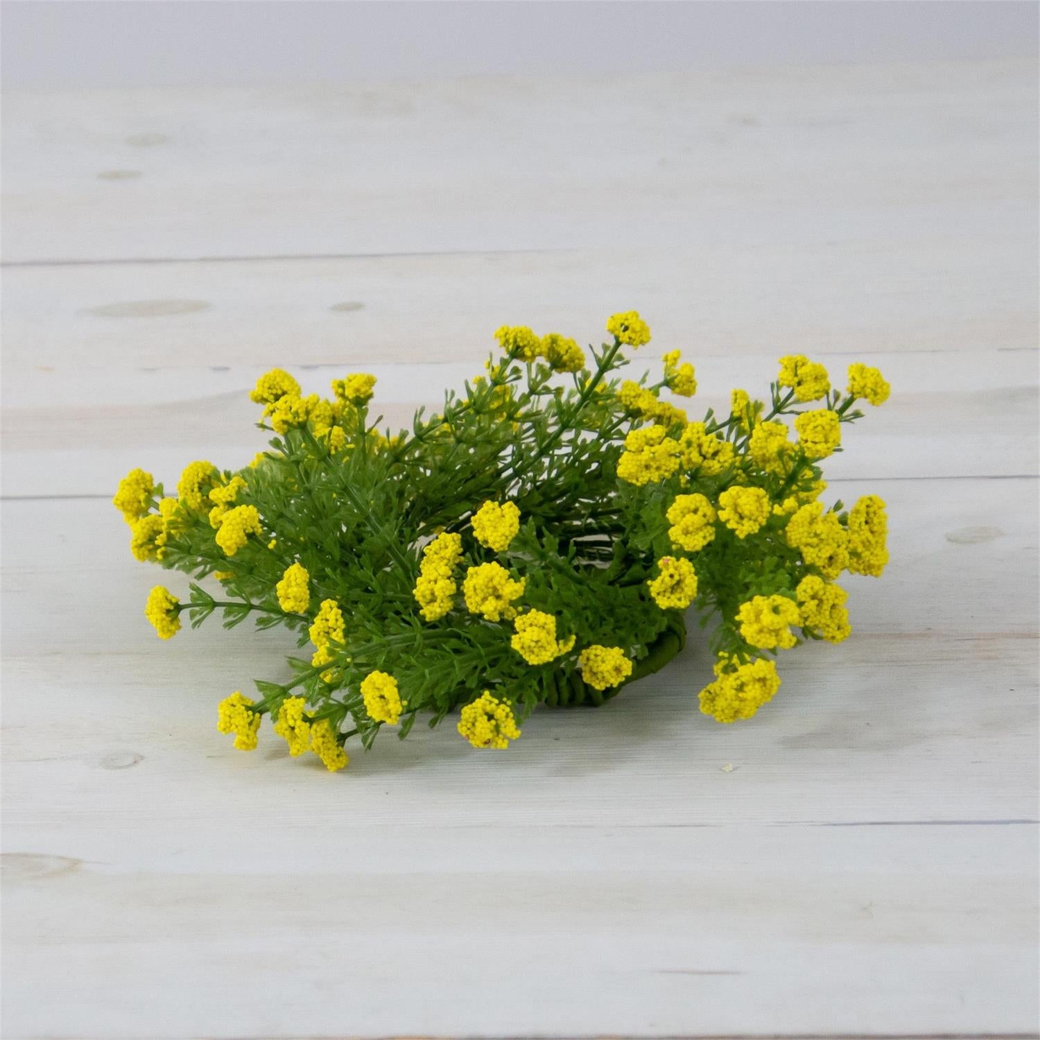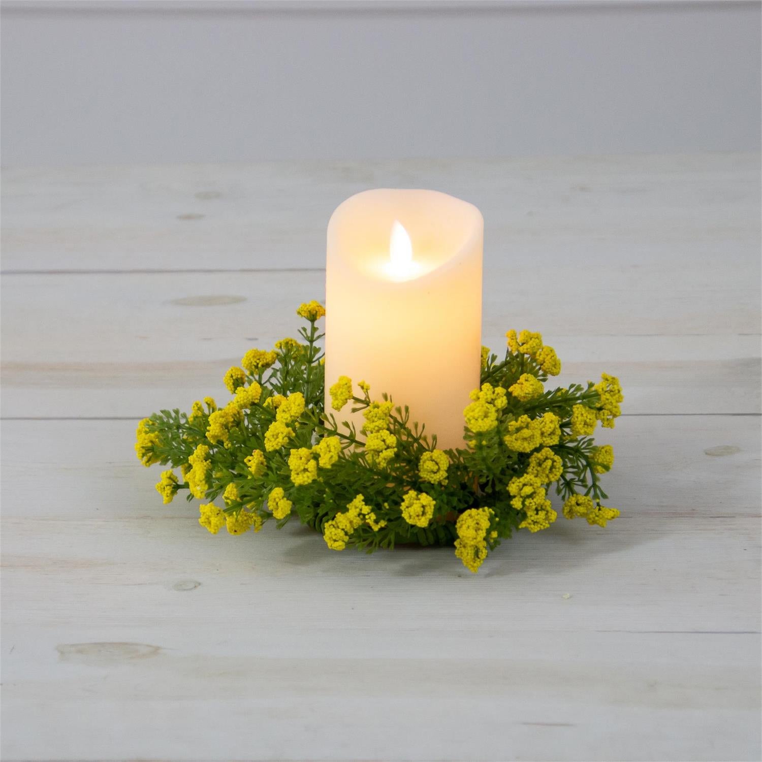 Add a charming touch to your home decor with our Yellow Phlox 9" Faux Floral Small Ring. This floral ring features vibrant yellow phlox flowers that will brighten up any space. Perfect for adding a pop of color to your table or mantle, this candle ring will bring a little bit of nature into your home.