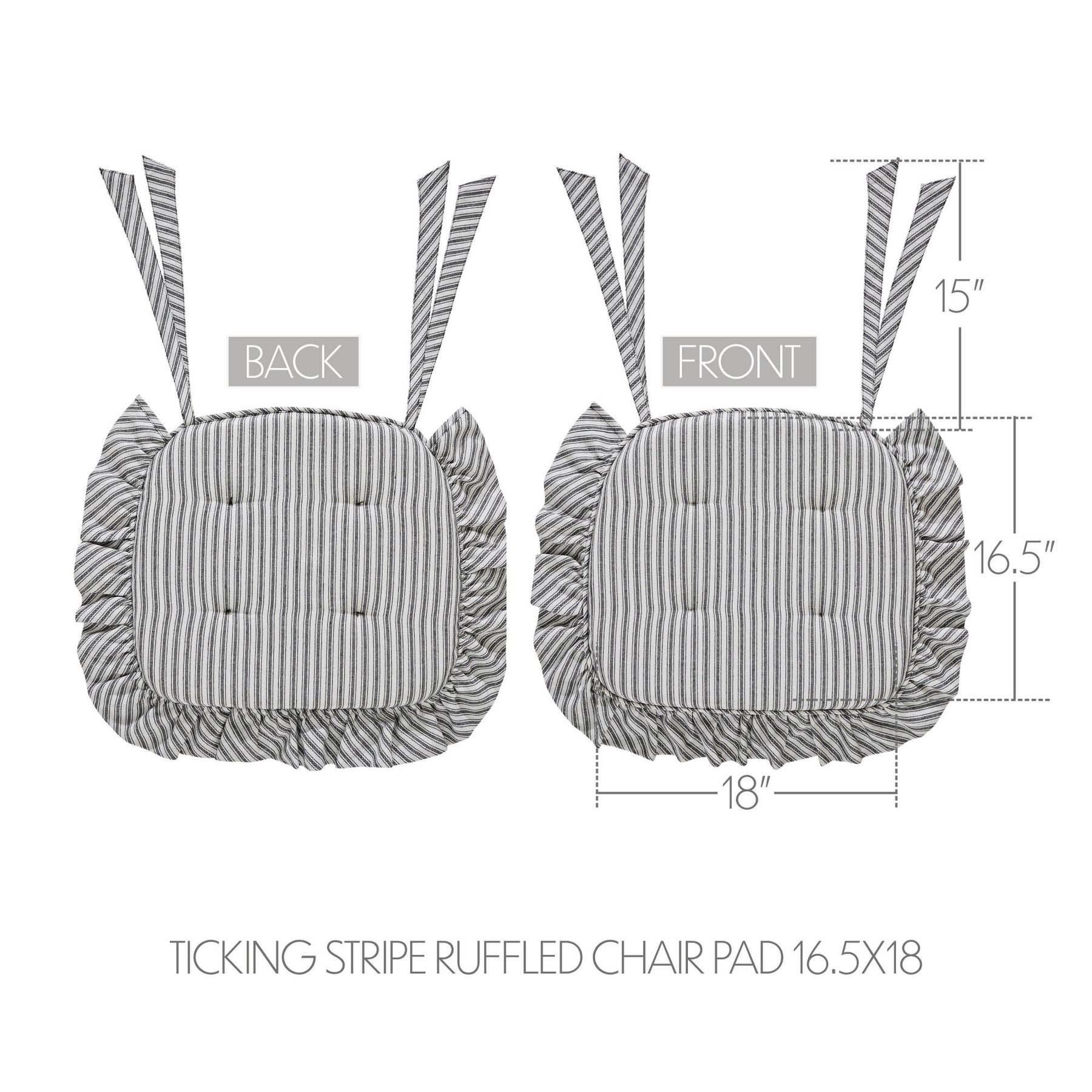 Sawyer Mill Black Ticking Stripe Ruffled Chair Pad 16.5" x 18"