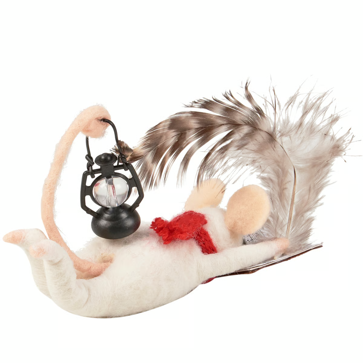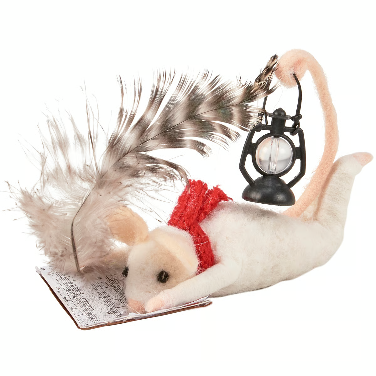 A felt critter displaying a cute design of a mouse writing a Christmas list that coordinates well with dรฉcor from our Christmas Collection. Mouse critter features cute accents including a feather quill and lantern hanging from its tail. Our Christmas List Mouse critter is designed to hang via included hanger or can free-stand on a flat surface.
