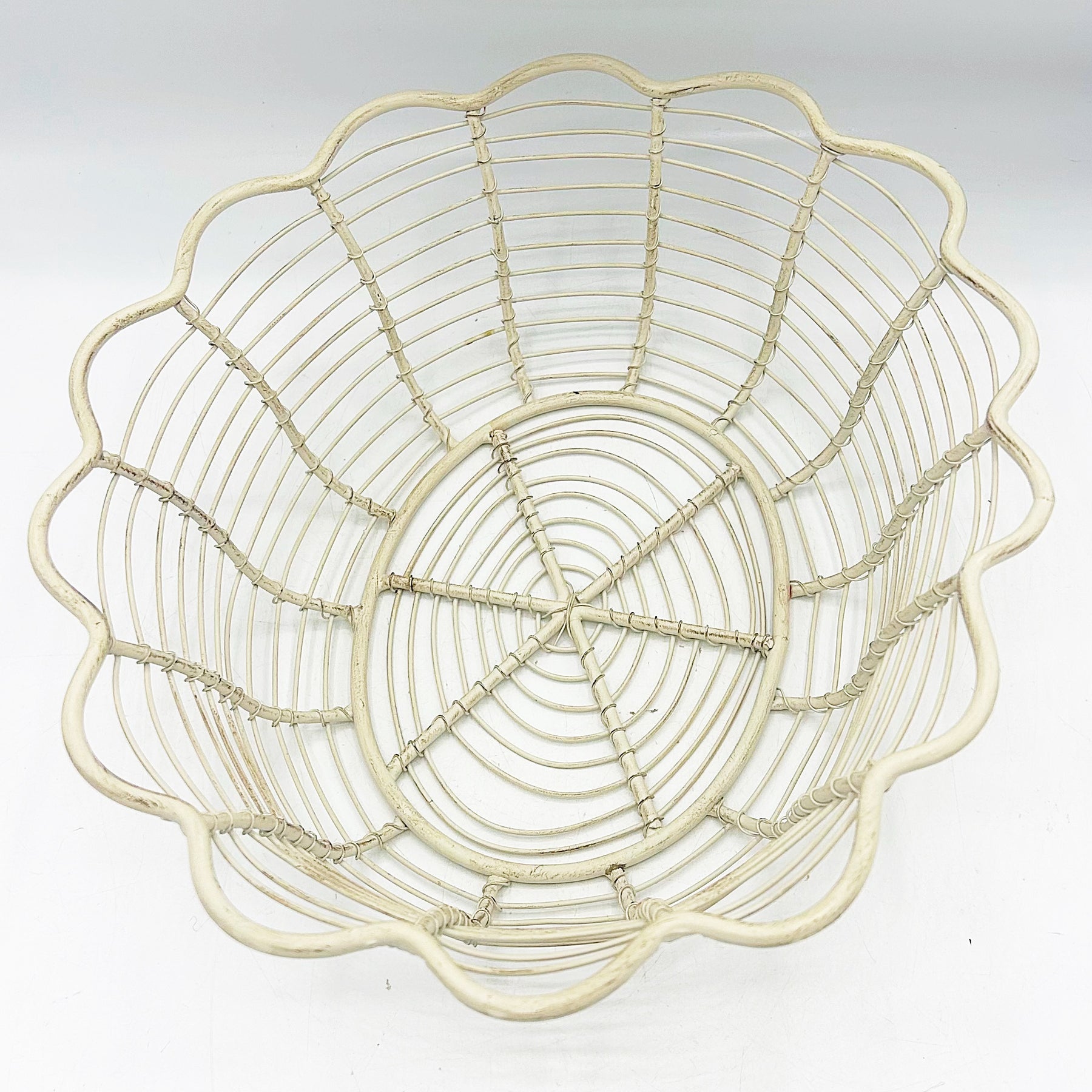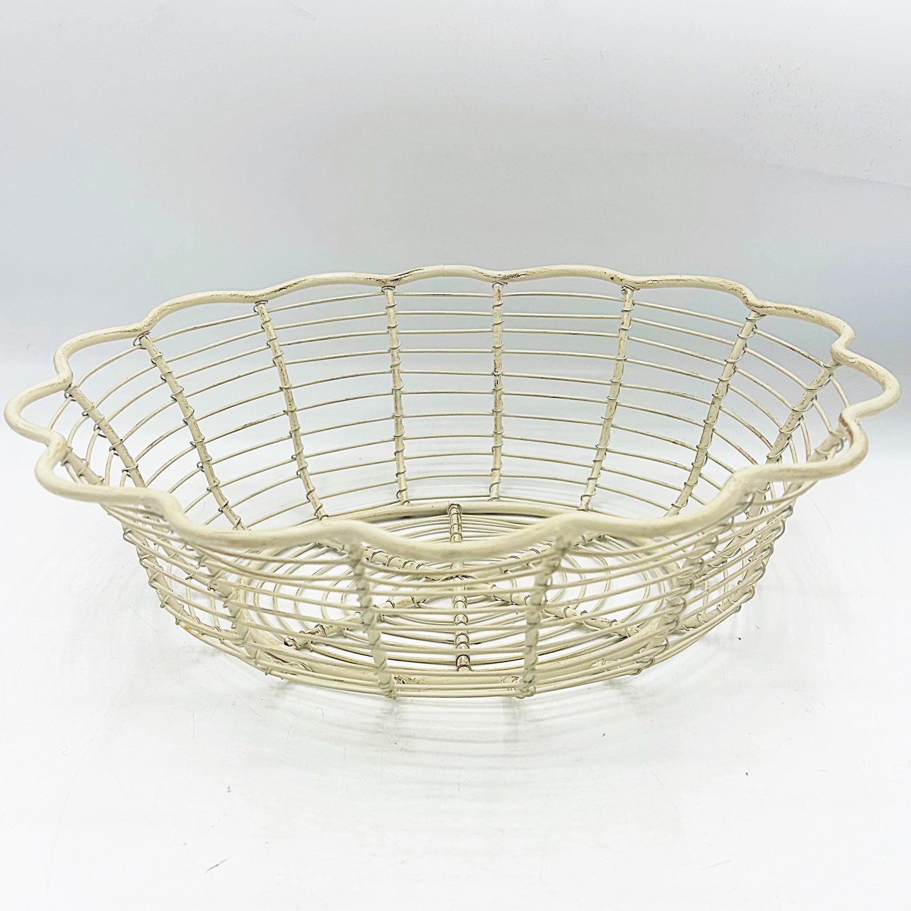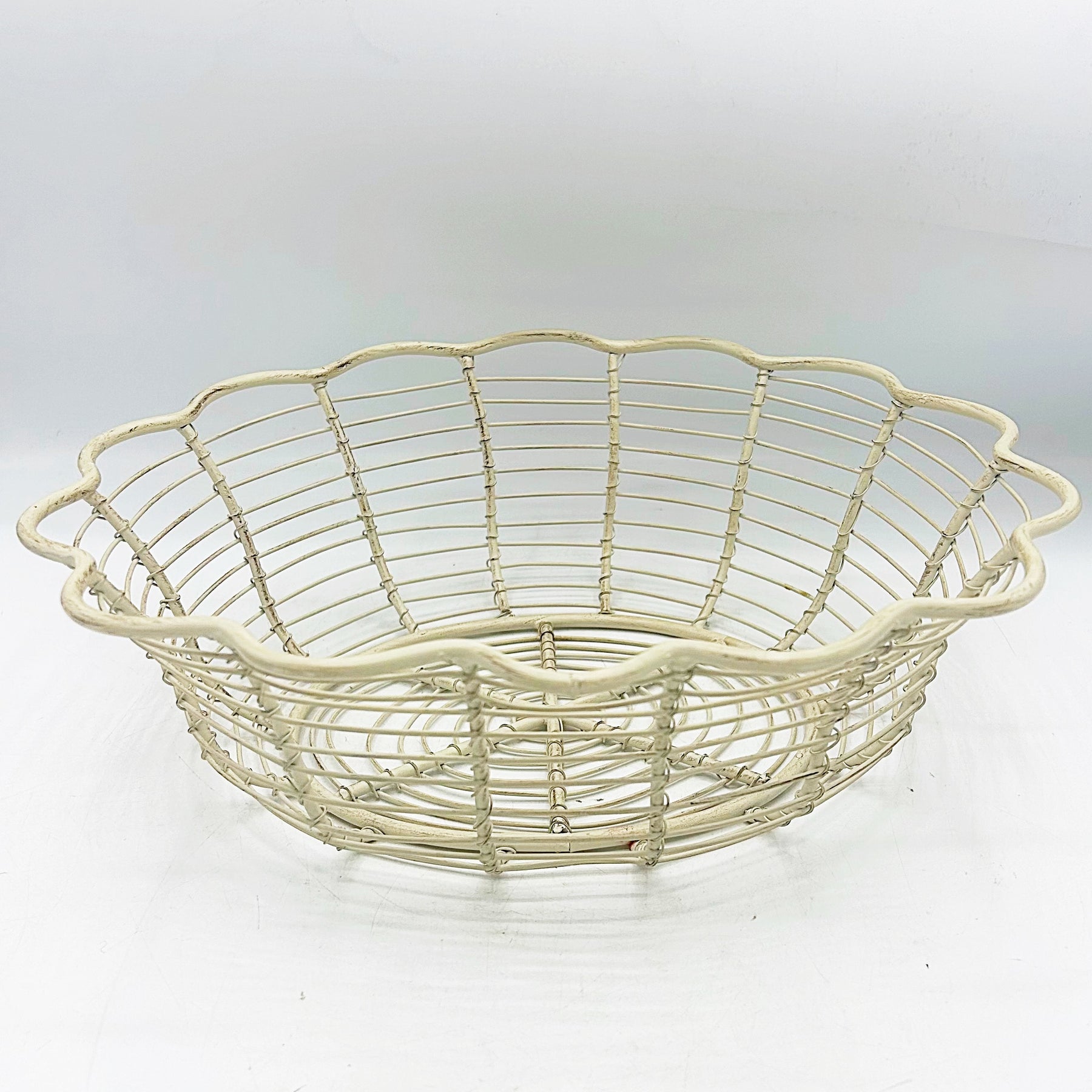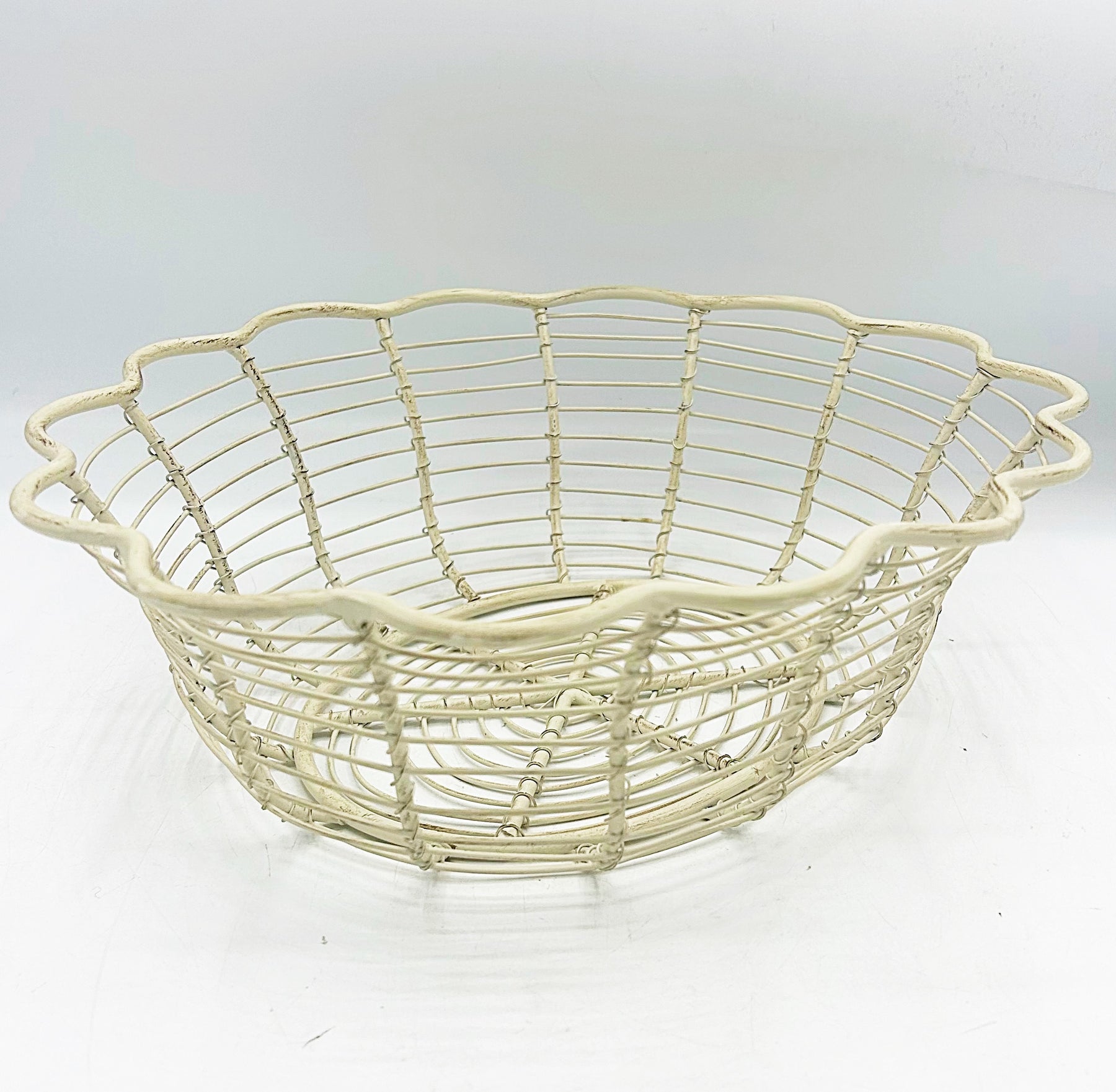 Add light, airy charm to your home with this scalloped cream wire basket. Its soft curved edges and open design make it perfect for holding produce, napkins, towels, or seasonal décor. Whether styled on a countertop, coffee table, or entry shelf, it brings a simple cottage and farmhouse touch to any space.