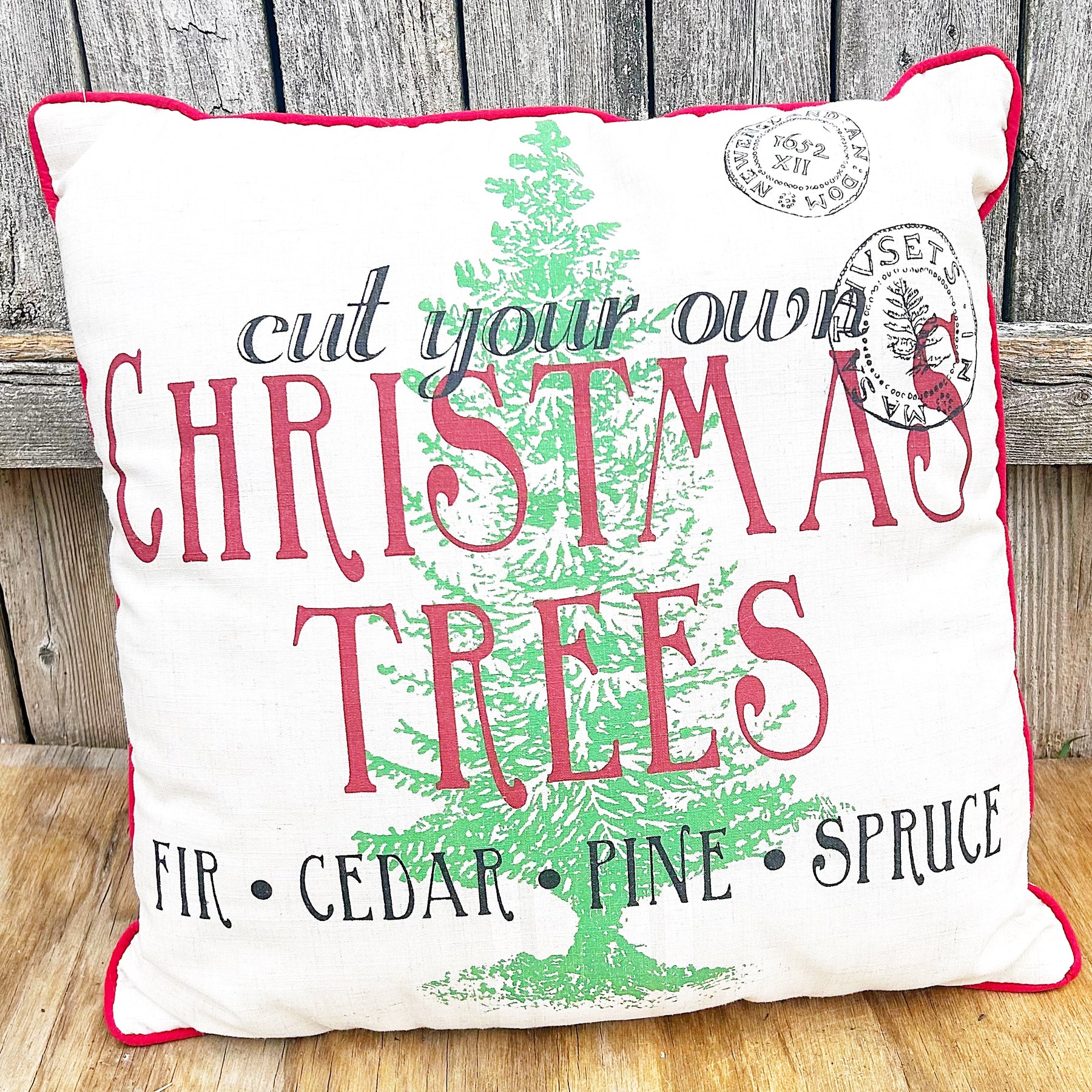Add a cozy touch to your home this holiday season with our Cut Your Own Christmas Trees 16" Accent Pillow. Featuring a festive design, this pillow is the perfect addition to your living room or bedroom. Decorate your space in style and embrace the holiday spirit with this charming accent pillow.