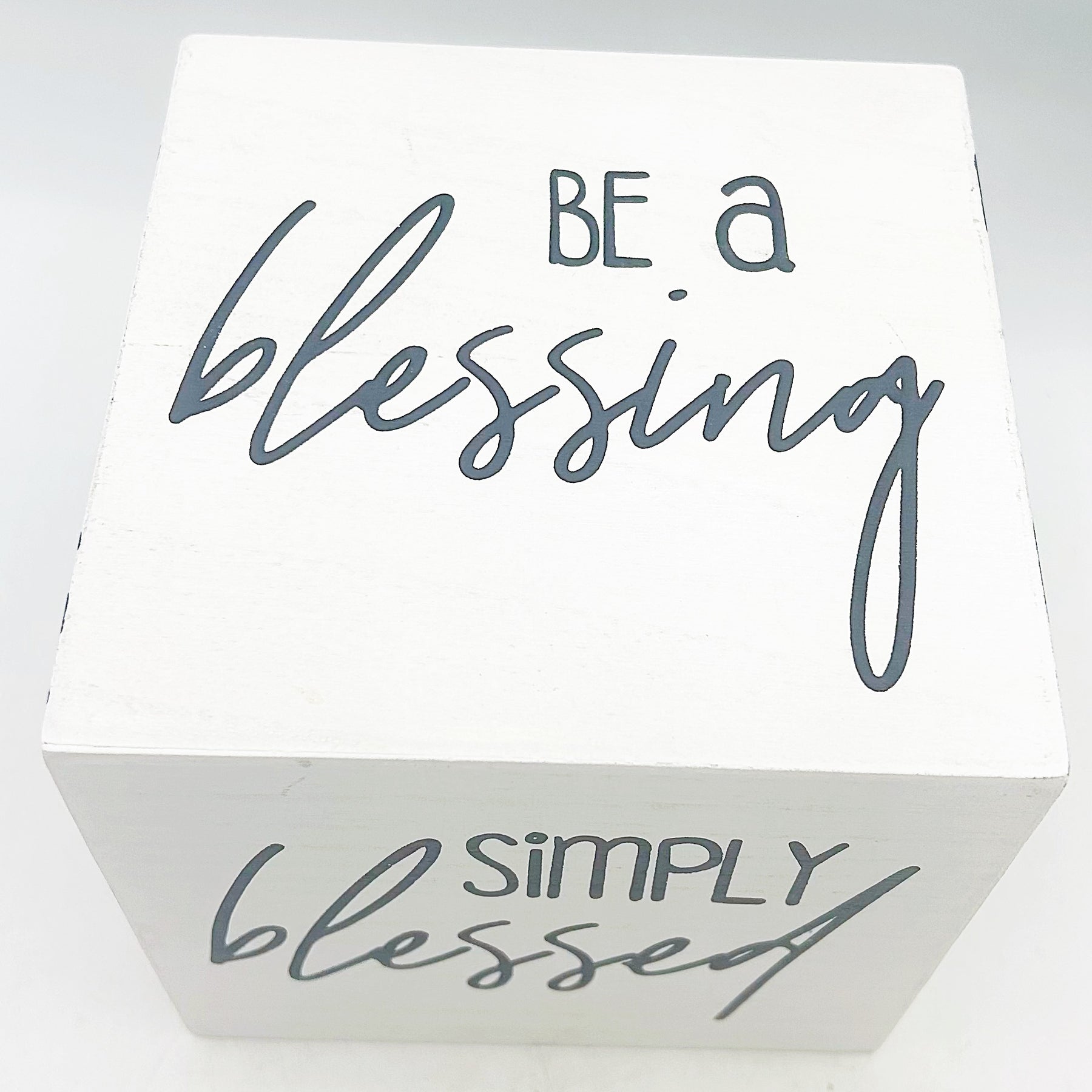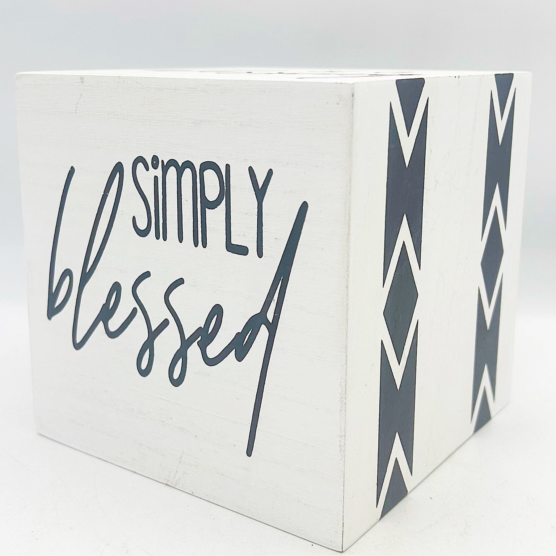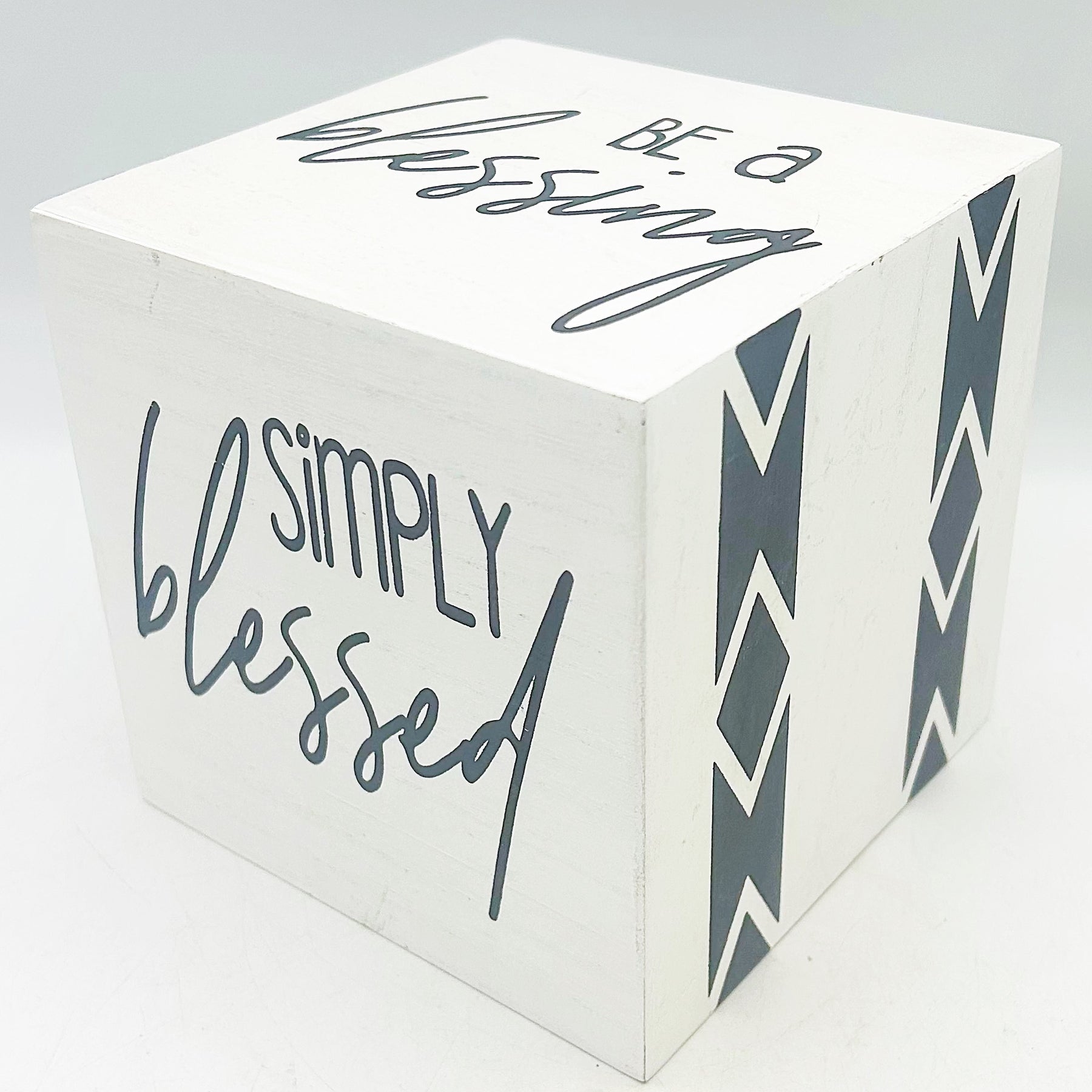 Add a touch of encouragement to your space with this charming wooden block featuring uplifting phrases like "Simply Blessed" and "Be a Blessing." Each side showcases a different message or bold black-and-white pattern, making it easy to turn and display a fresh sentiment whenever you need a little inspiration. Perfect for shelves, desks, or gift giving.