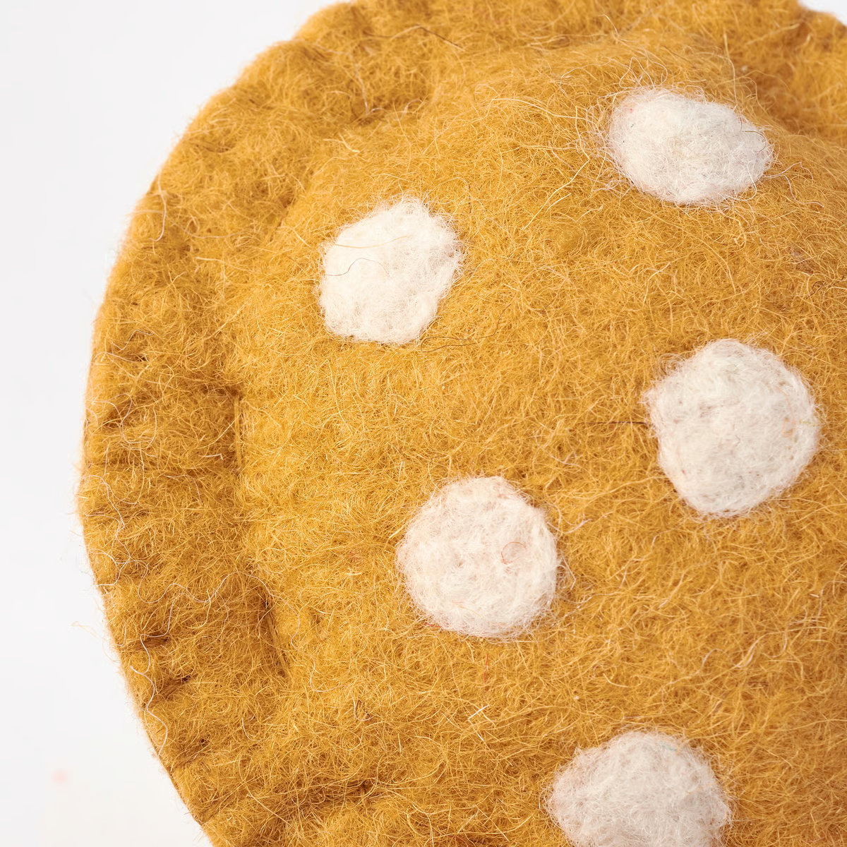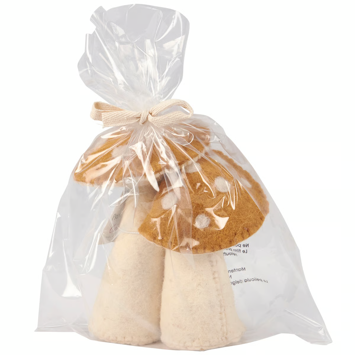 A set of two felt figures from our Cottagecore Collection displaying toadstool mushroom inspired designs perfect for adding character to any space. Mushrooms feature handmade details including stitched accents along the edges. Our Toadstool Mushrooms are designed to free-stand on flat surface for display.