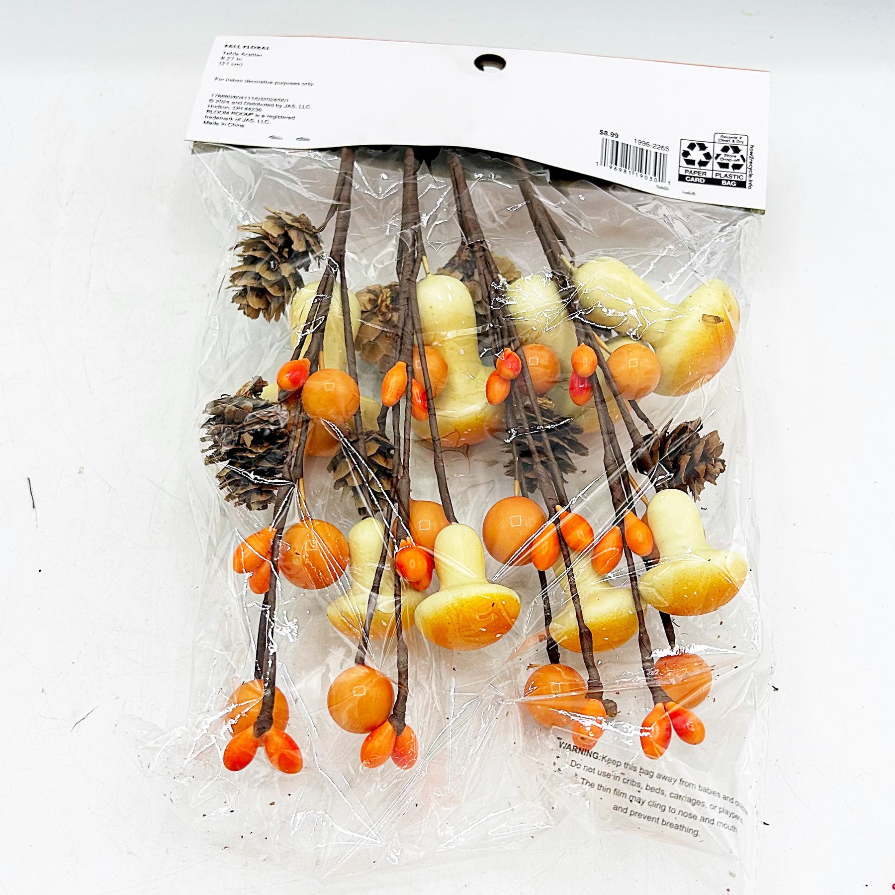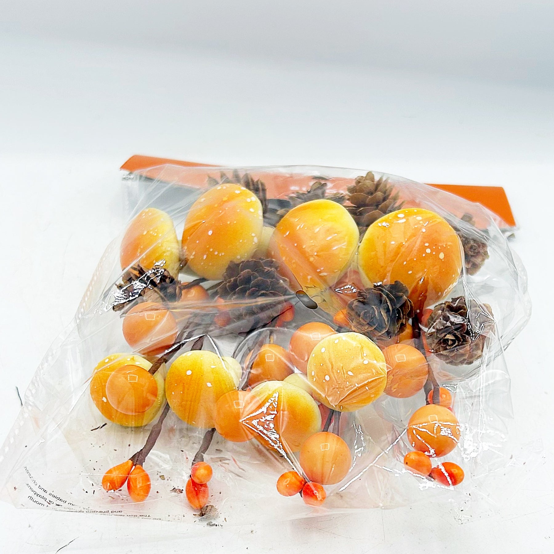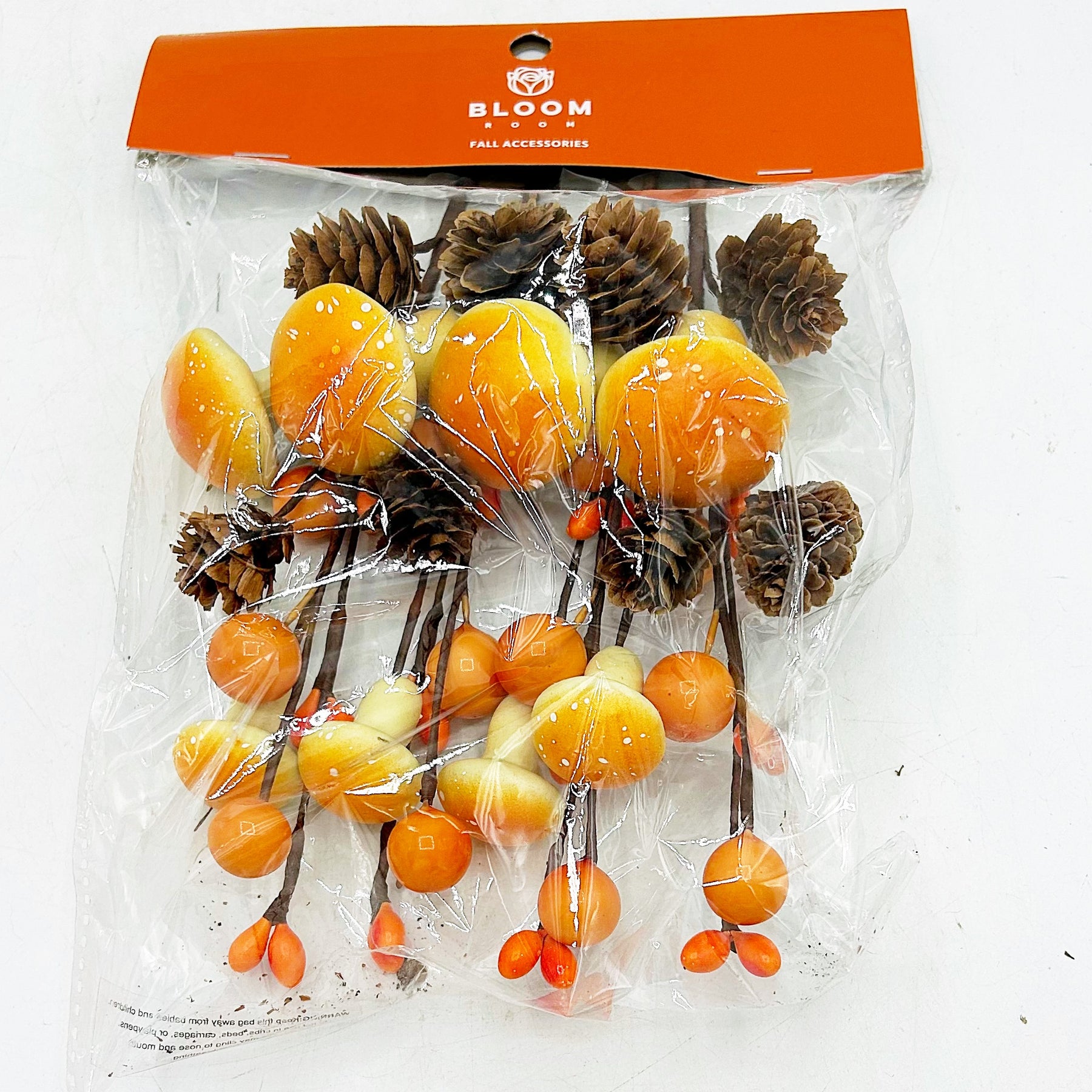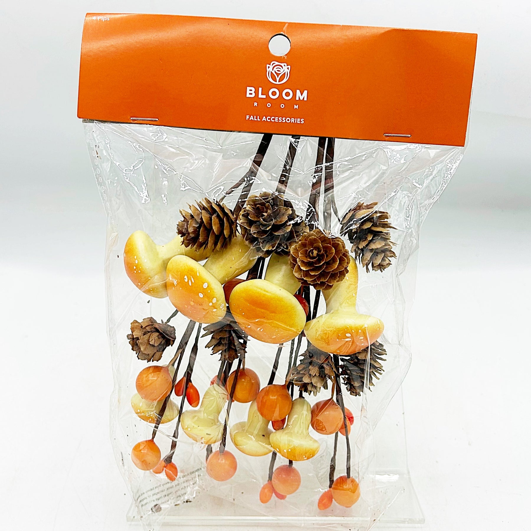 π Set of Four Fall Orange Mushroom & Pinecone 8" Picks