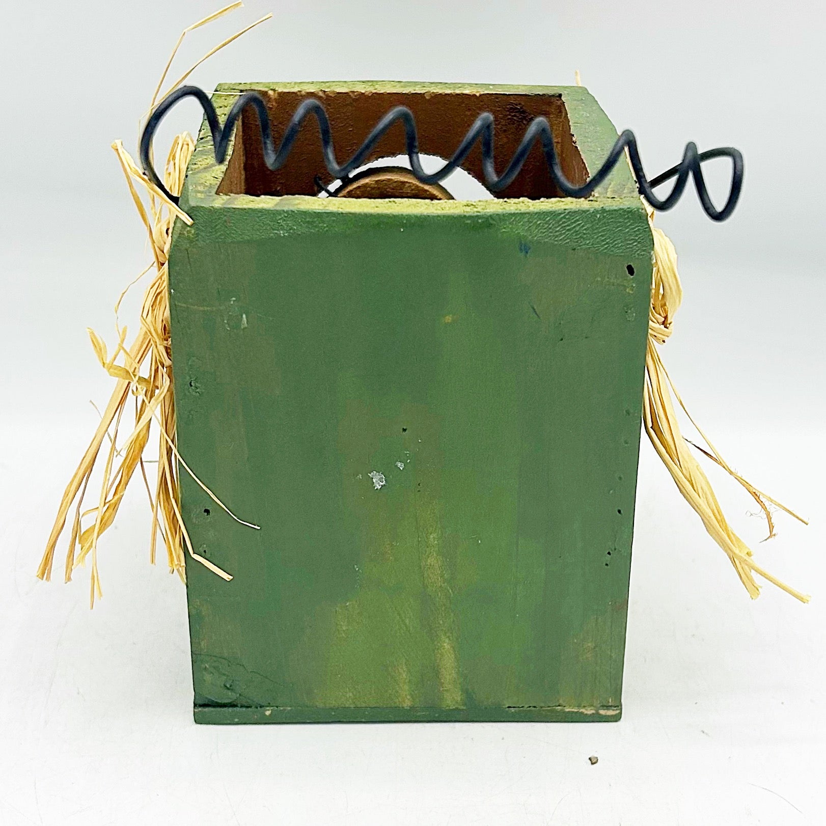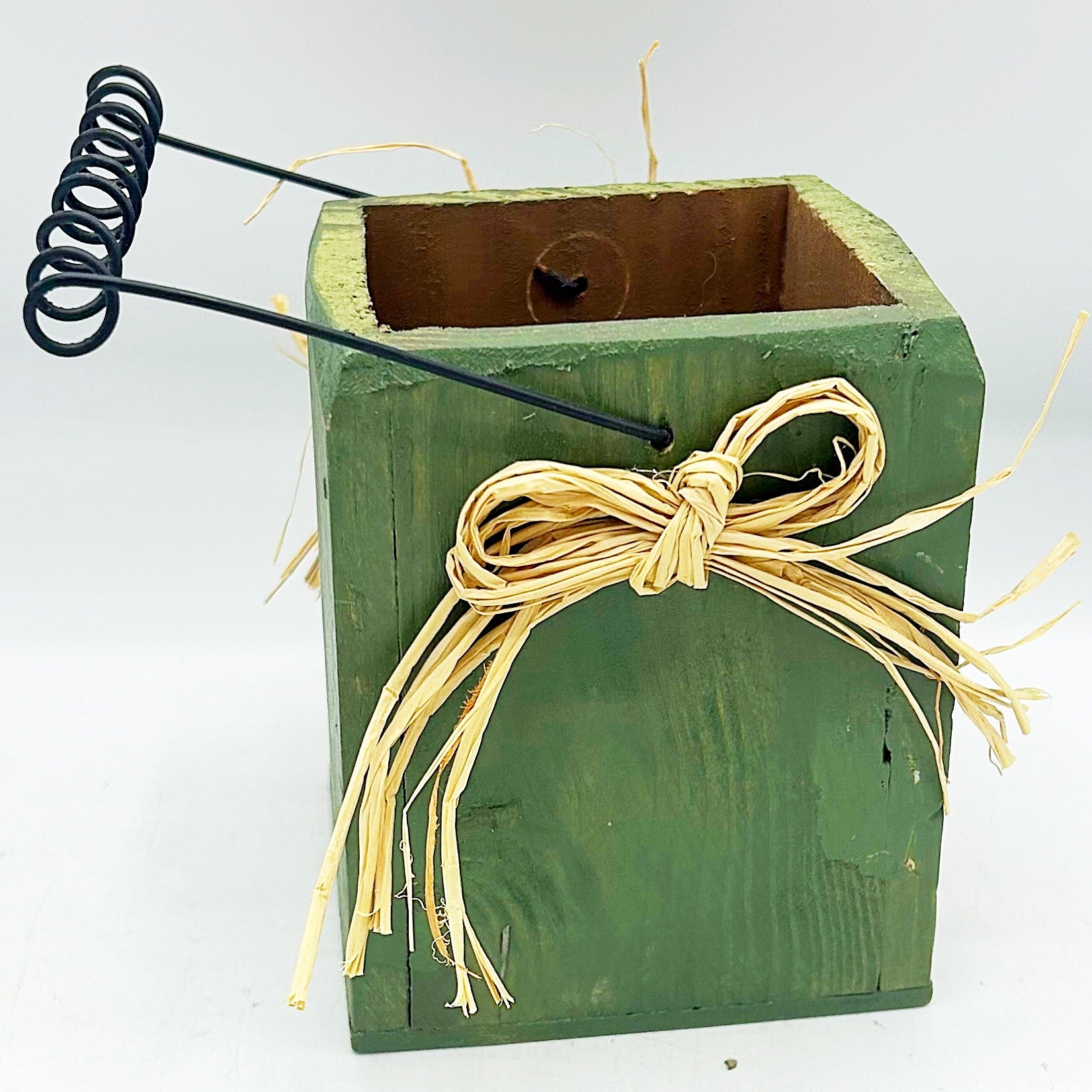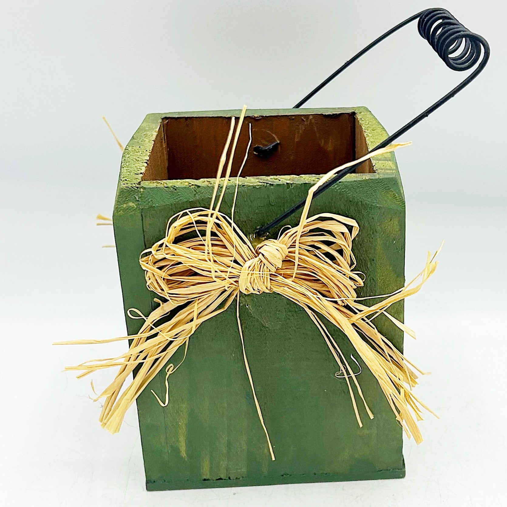 This charming Wooden Candy Cane Box is perfect for storing holiday treats or small trinkets. Its metal handle allows for easy transport, while its primitive style adds a rustic touch to any tabletop.