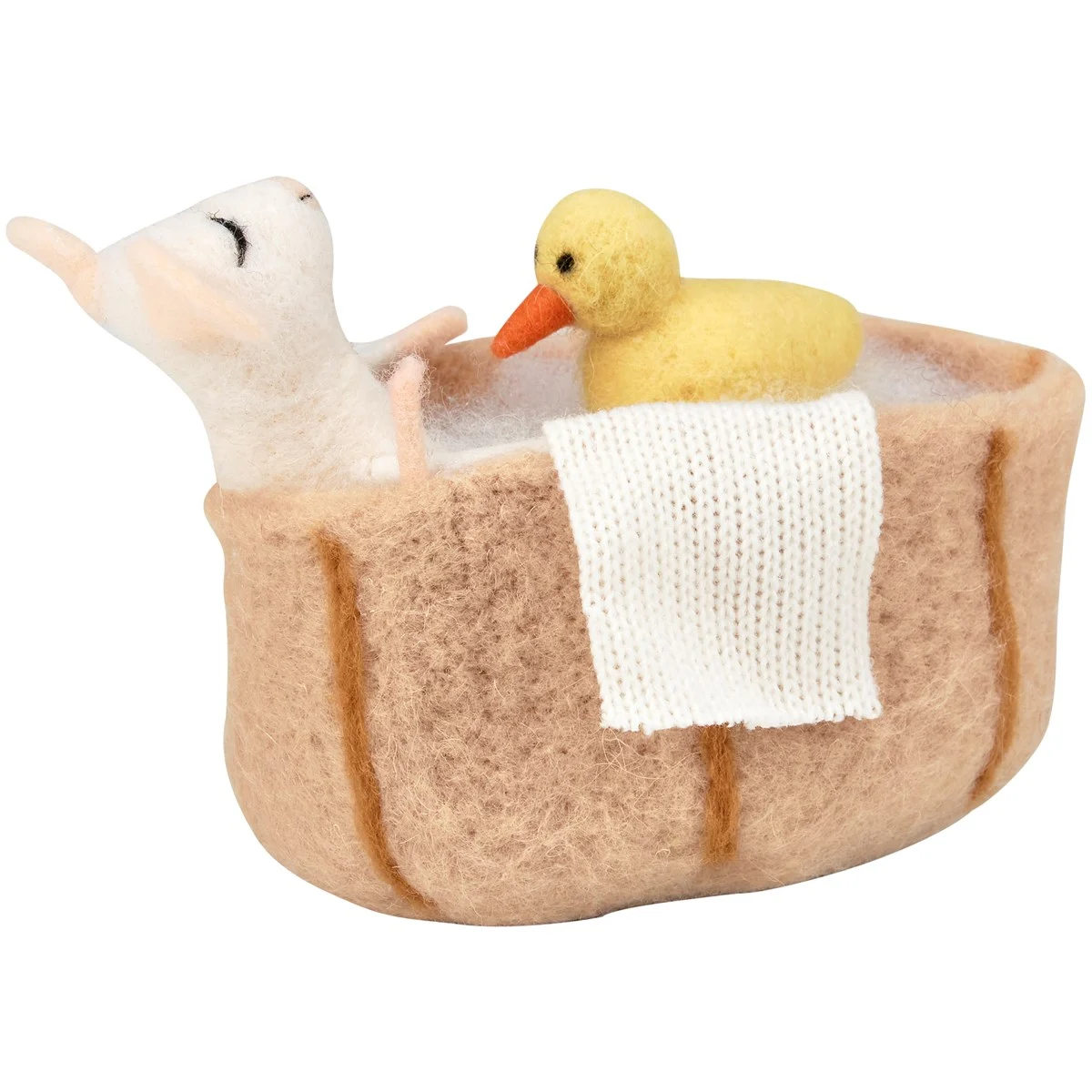 Mouse and Ducky Friend in Bathtub Felt Critter