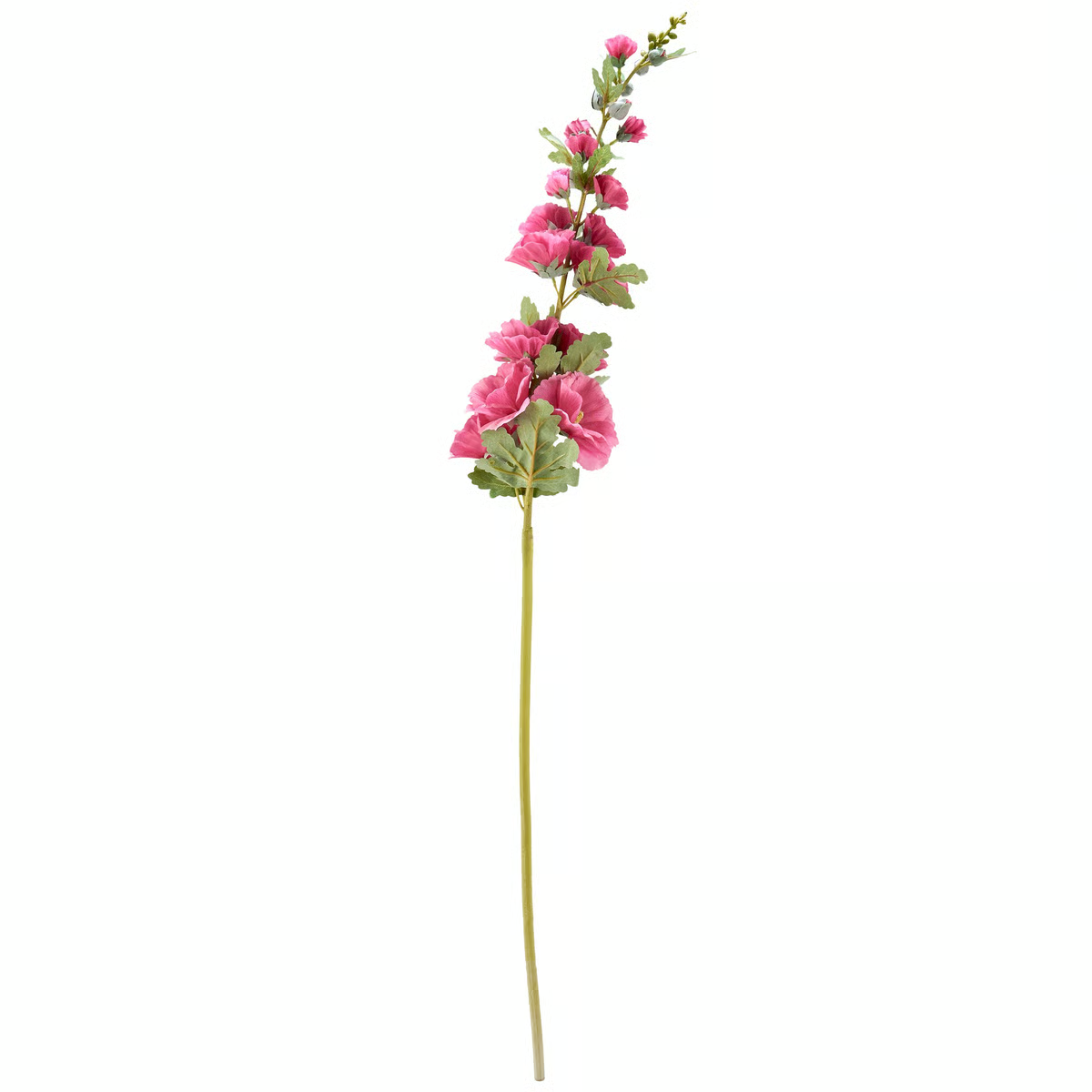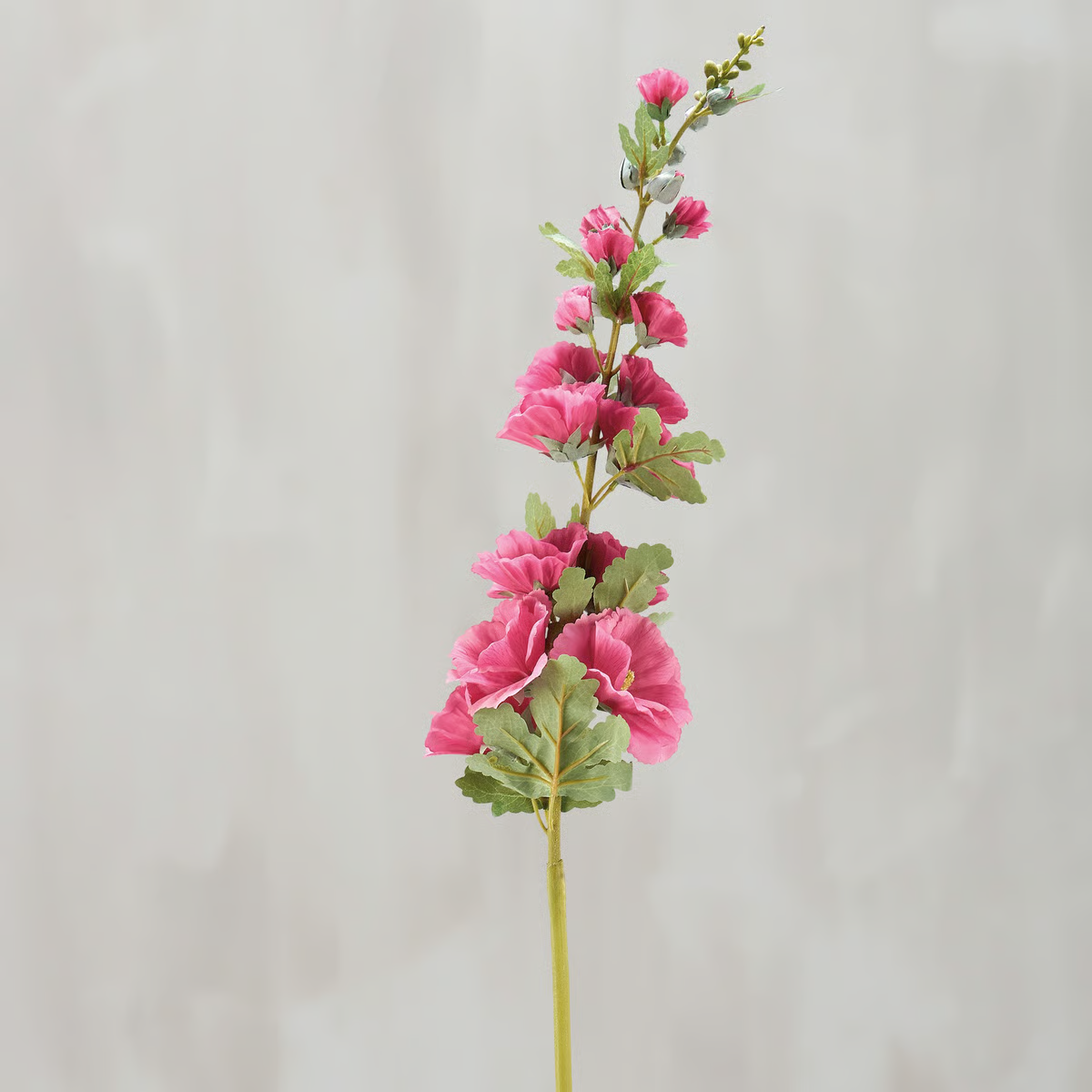 Dark Pink Hollyhock 44" Faux Floral Spray
