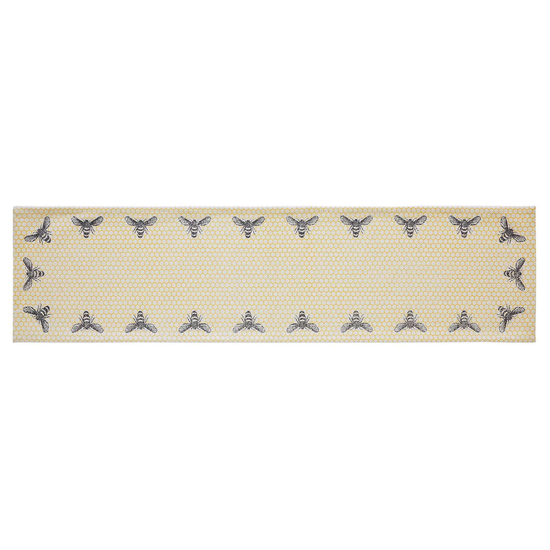 Transform your dining room or kitchen with the charm of the Runner from the Buzzy Bees Collection. Crafted in a 12x48-inch size, this Table Runner infuses your space with a delightful Vintage vibe. The Vintage Yellow hue and honeycomb pattern create a captivating Primitive design. Made from high-quality cotton in a Flat Weave, this Table Runner is not just a style statement but also a durable and easy-to-maintain addition to your Country Farmhouse decor.