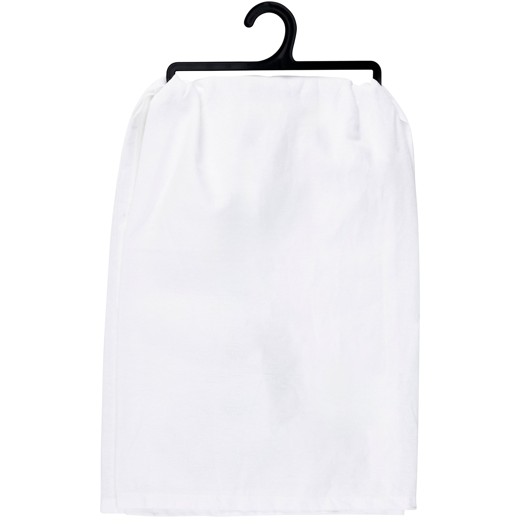 A white cotton kitchen towel from our Holiday Pet Collection/ displaying a unique hand illustrated choir of dogs singing in red and green robes and a fun pet inspired sentiment that reads "...Do You Smell What I Smell?" Our Do You Smell kitchen towel is conveniently machine-washable for easy cleaning. Seasonal kitchen towel is packaged on a black plastic hanger to easily display on rack. A festive pet-themed kitchen accessory perfect for seasonal use.