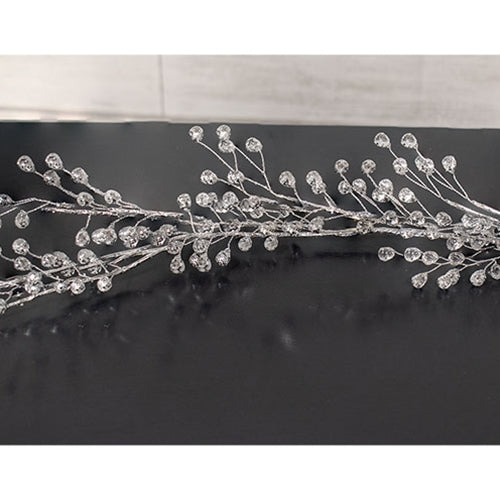 The Icy Gems Garland is a unique accent that adds shimmer to seasonal decor. The garland features clear plastic crystals on a metallic silver-wrapped wire stem. The crystals are faceted and sprinkled with glitter for a sparkling look. The stems are flexible for precise styling.