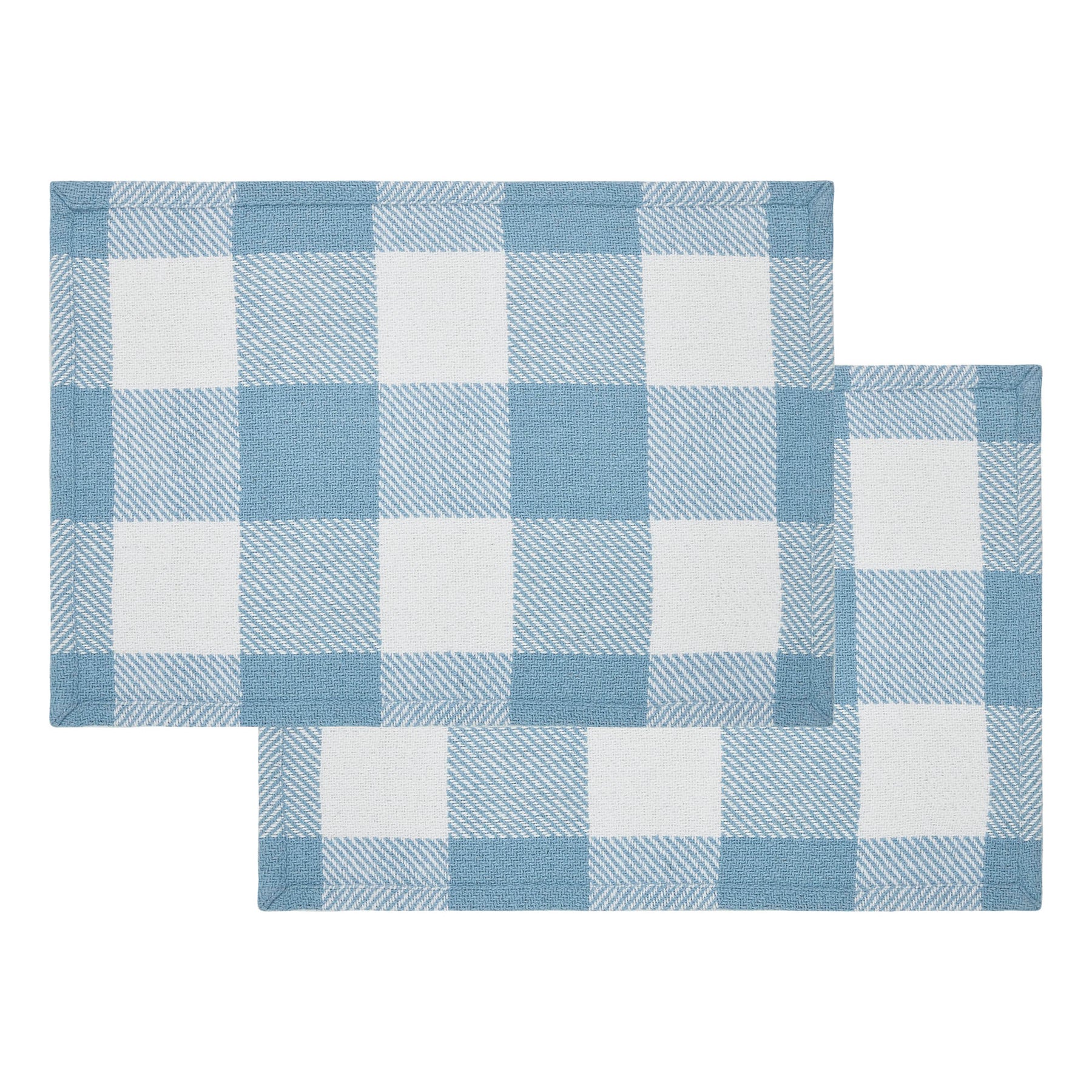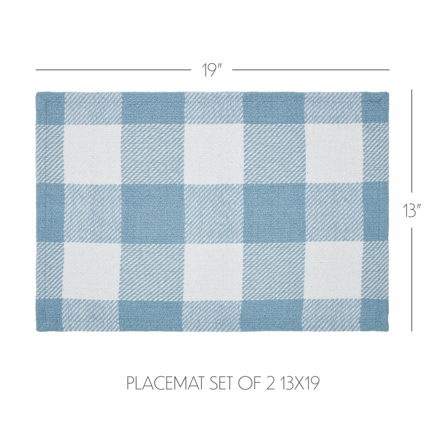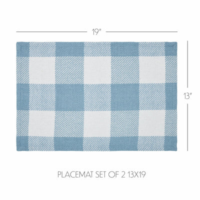 Introducing the Placemat 13x19 Set of 2 from the Annie Buffalo Check Collection, a perfect addition to your farmhouse and country-inspired dining room or kitchen. Crafted from high-quality cotton in soothing dusk blue, these placemats showcase the timeless buffalo check pattern, adding a touch of rustic charm to your dining table.
