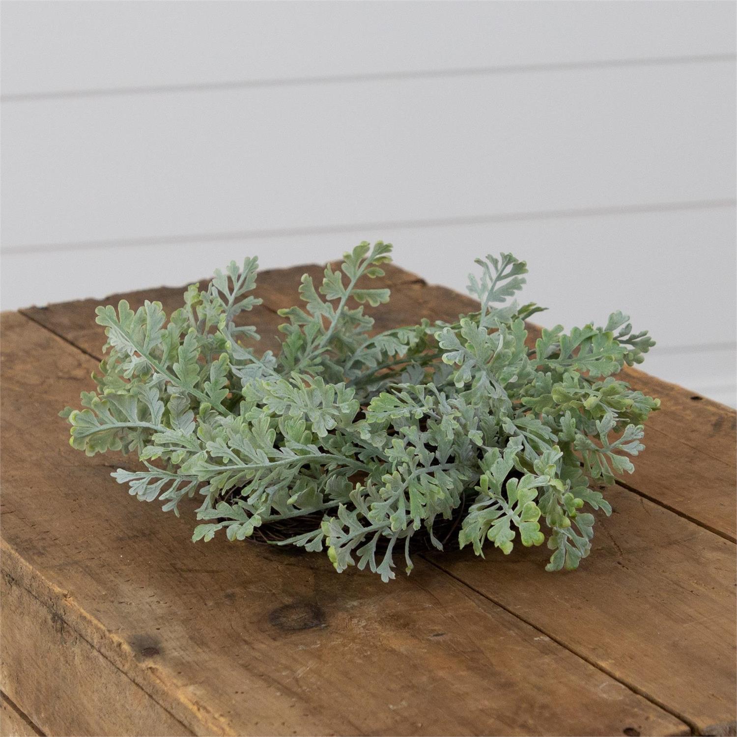 Add a touch of natural elegance to any space with our Dusty Miller 11" Faux Foliage Ring. Featuring lifelike leaves and a durable design, this ring is perfect for brightening up any room without the hassle of maintenance. Bring the beauty of nature indoors with our faux foliage ring.