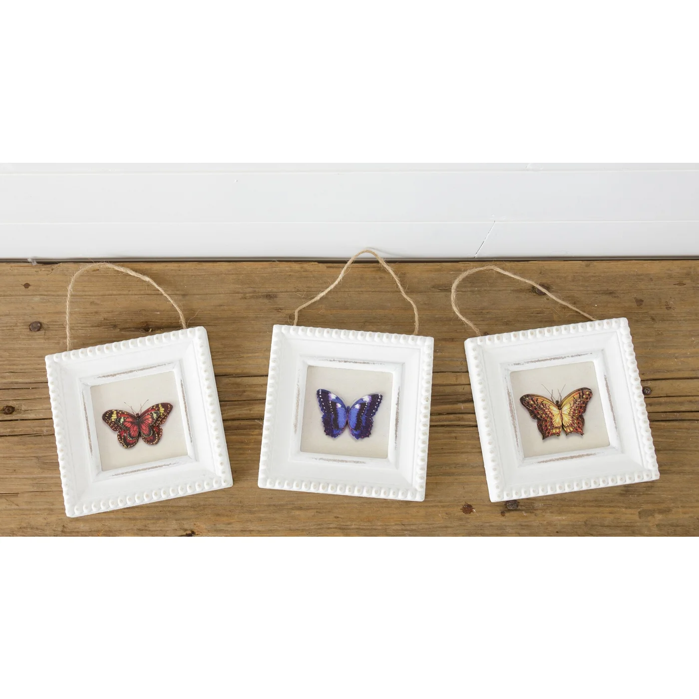 Set of 3 Butterfly Beaded Mini Framed Decor