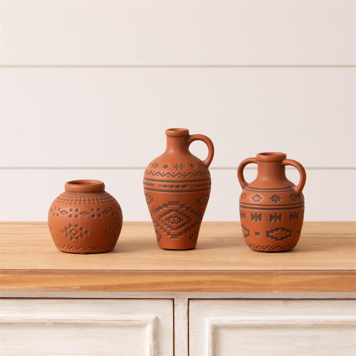 Set of 3 Southwestern Inspired Textured Bud Vases