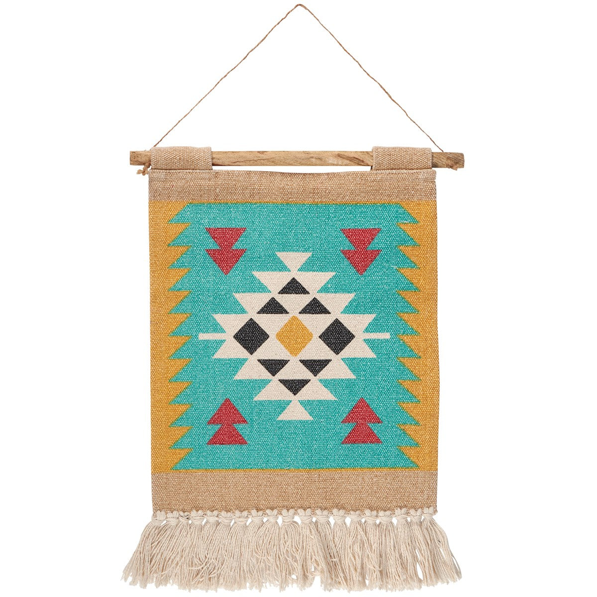 A cotton wall hanging from our Western Collection displaying a woven western pattern in a southwest color palette. Wall hanging features coordinating tassels at the bottom for added interest. Our Western wall hanging is easy to display via the attached jute hanger. A western-themed home accent perfect for everyday display.